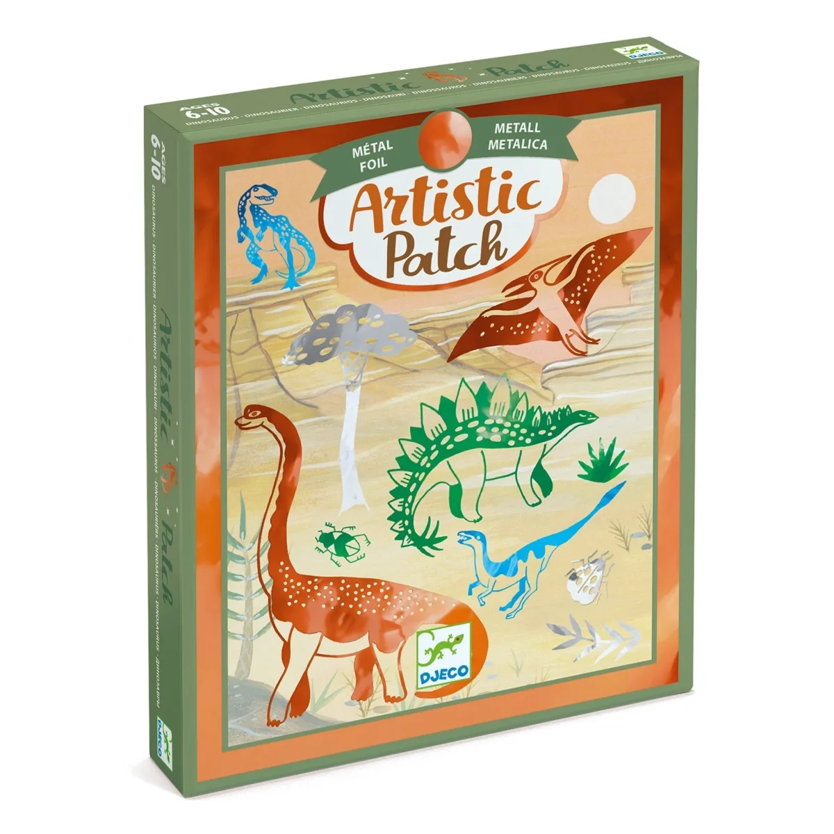 Ce kit propose de décorer 12 cartes illustrées sur le thème des dinosaures, avec des patchs de colle et des feuilles métallisées aux couleurs chatoyantes. L’enfant choisit un patch de colle et l’applique sur la carte de son choix. Il choisit une feuille métallisée, puis la dépose sur le patch collant. La forme du patch est alors révélée en couleurs ! Ce coffret fait partie de la gamme Artistic Patch proposant différentes textures à coller pour varier les plaisirs !