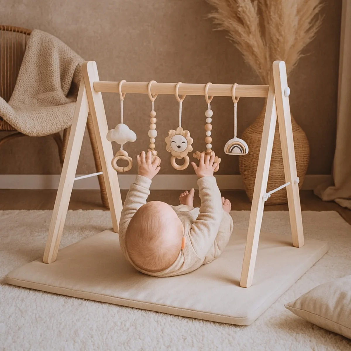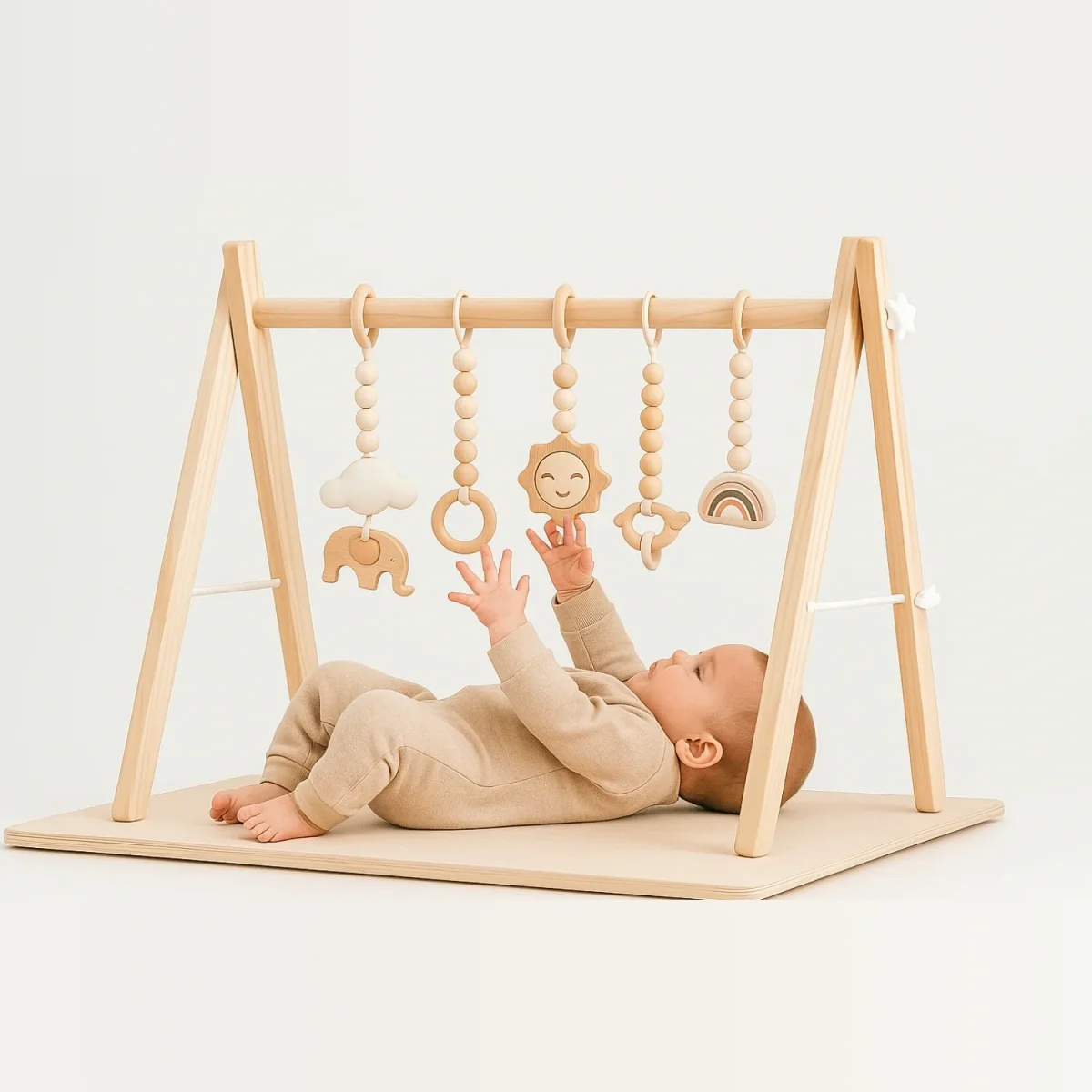Arche d’Éveil Bébé 0-12 mois en Bois | Baby Gym Pliable | Pratique et Facile à installer