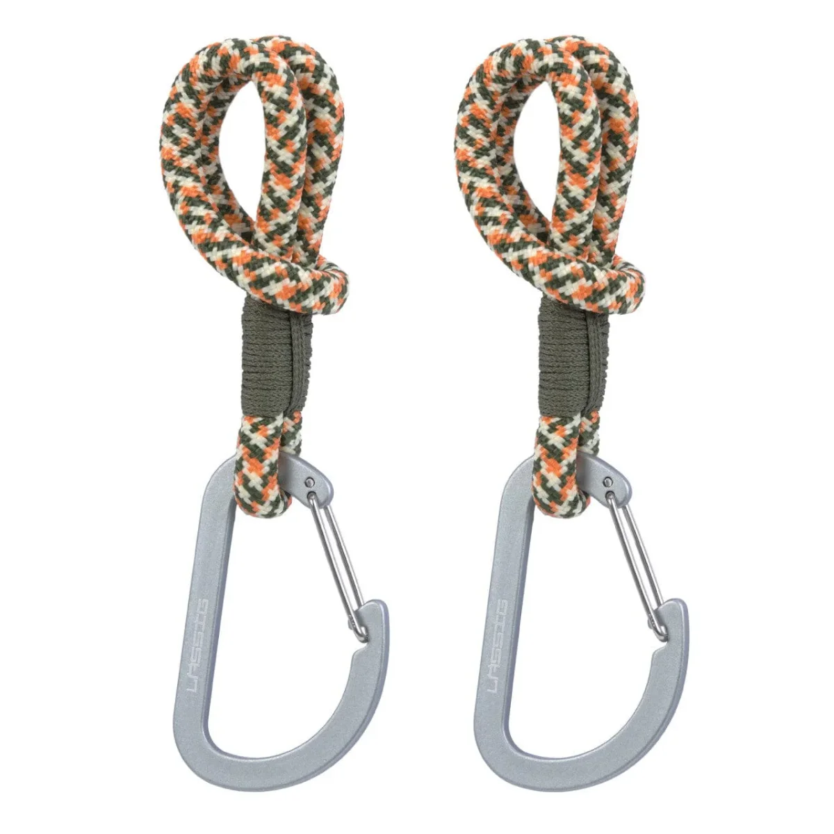 Les mousquetons sont en métal robuste et supportent donc un certain poids. Grâce à la grande ouverture des mousquetons, des objets volumineux peuvent facilement y être suspendus. Ainsi, les crochets pour poussette s’adaptent individuellement aux différents modèles de sacs, de sacs à dos, mais aussi de sacs à provisions, de jouets et de gourdes.