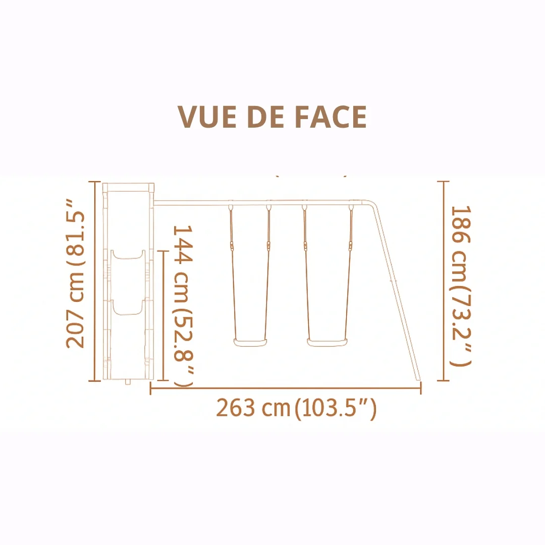 Balançoire double avec Toboggan et Echelle d’escalade – Enfant 3-8 ans – Aire de jeux Montessori sécurité & joie au jardin – Livraison Octobre 2025