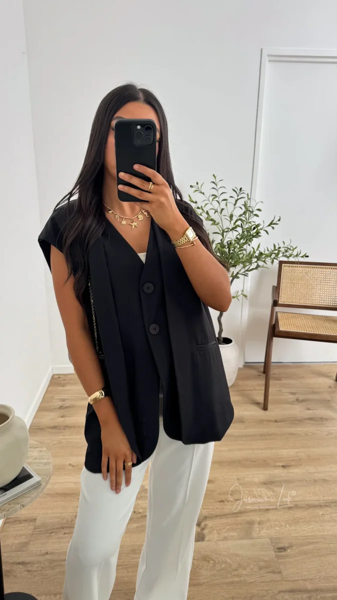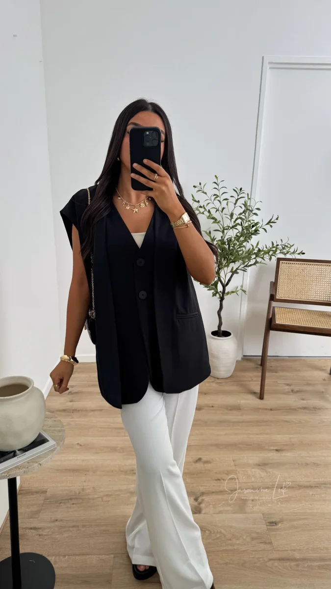 ⚜️Blazer avec doublure sans manche coupe oversize ⚜️Taille unique convient du S au XL . La modèle mesure 1m63