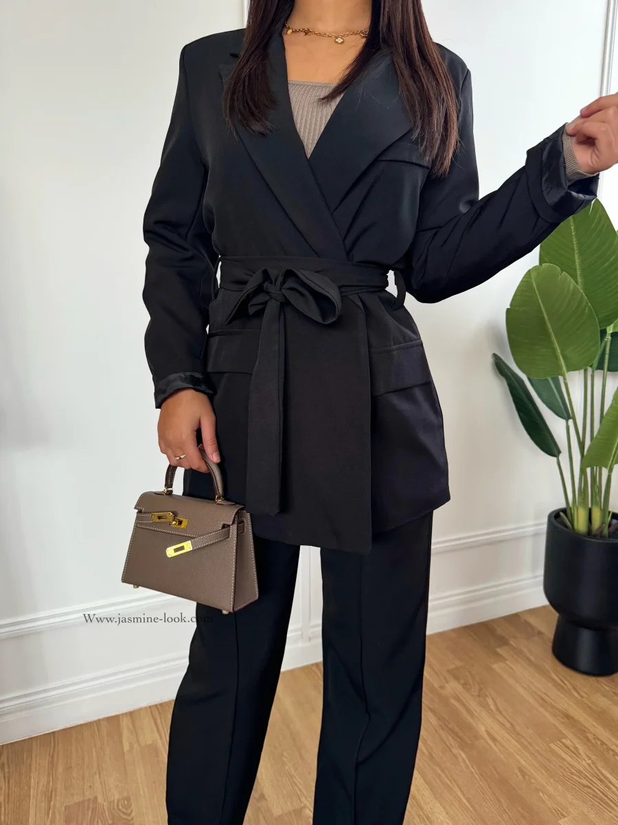 ⚜️Blazer mi long avec ceinture double tour ⚜️Taille unique ample convient du S au Xl La modèle mesure 1m64