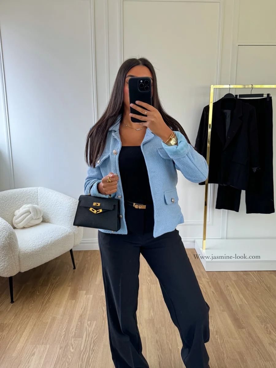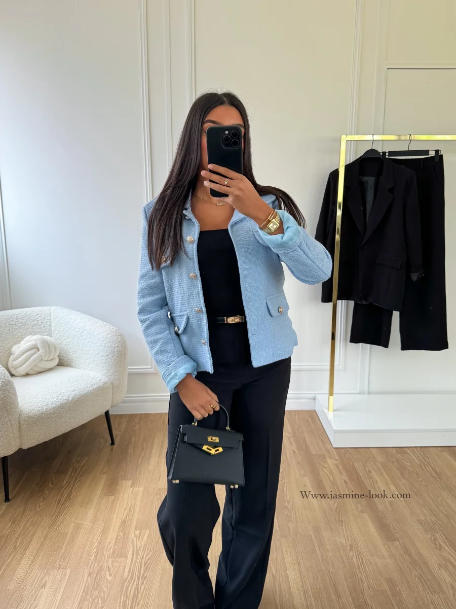 Blazer en tweed avec bouton gold coupe droite Taille parfaitement