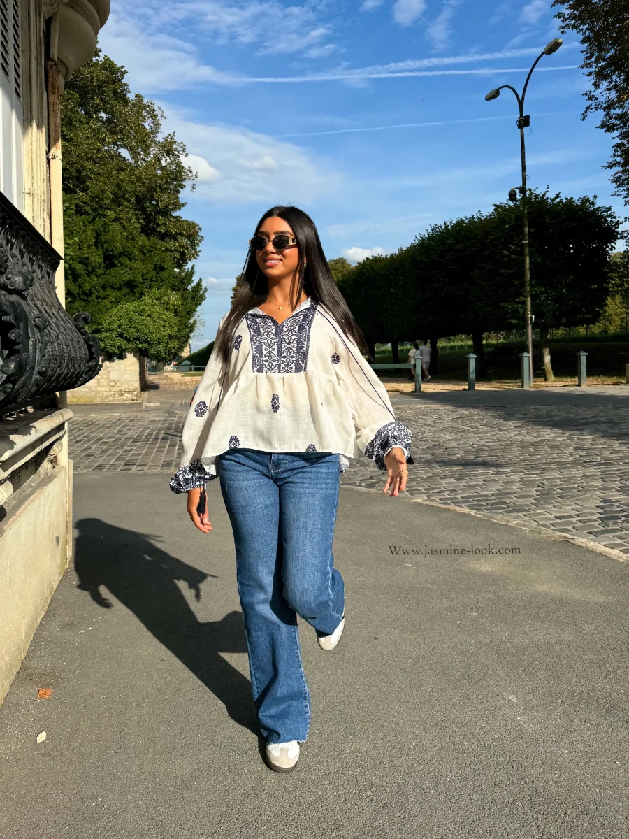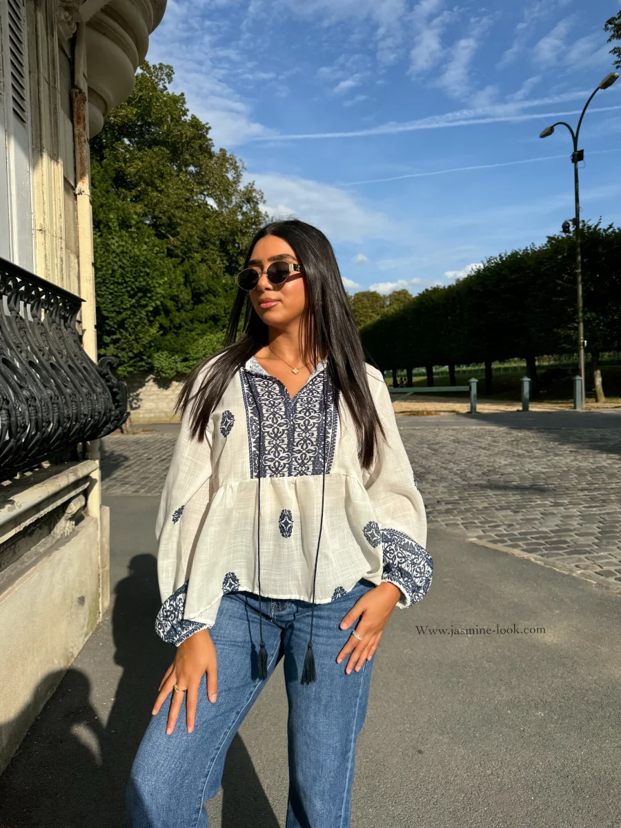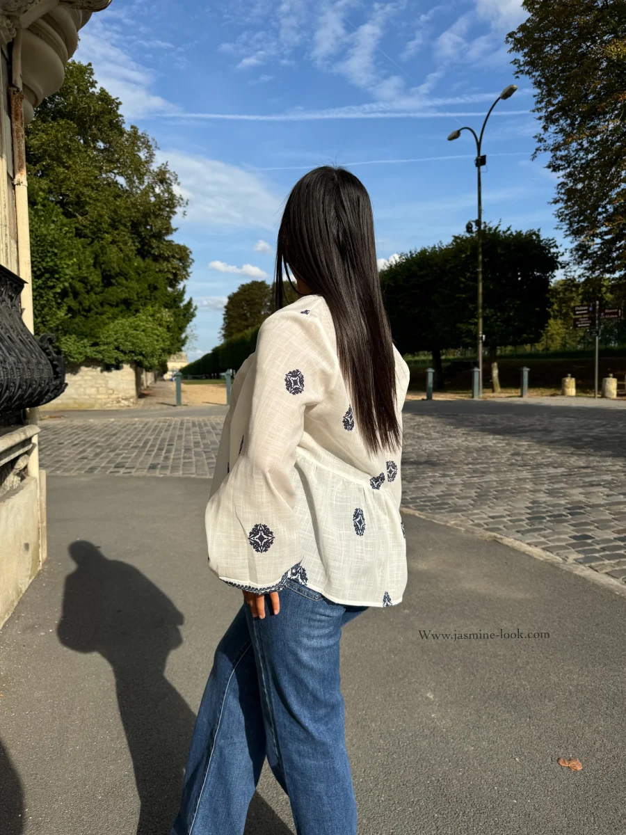 ⚜️Blouse en Cotton effet lin avec manches bouffantes