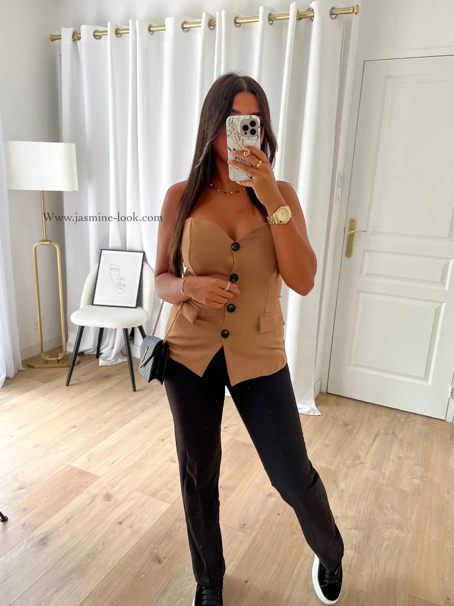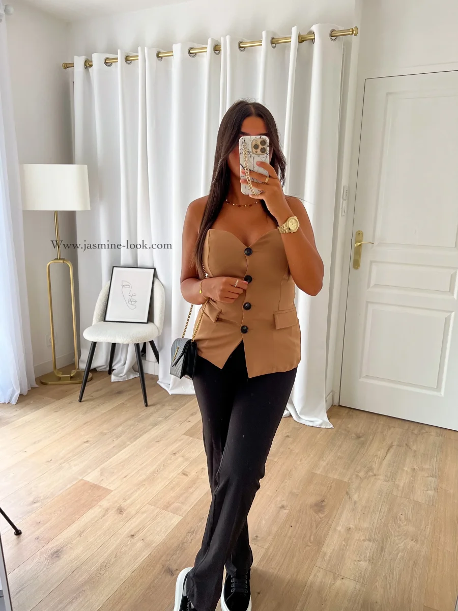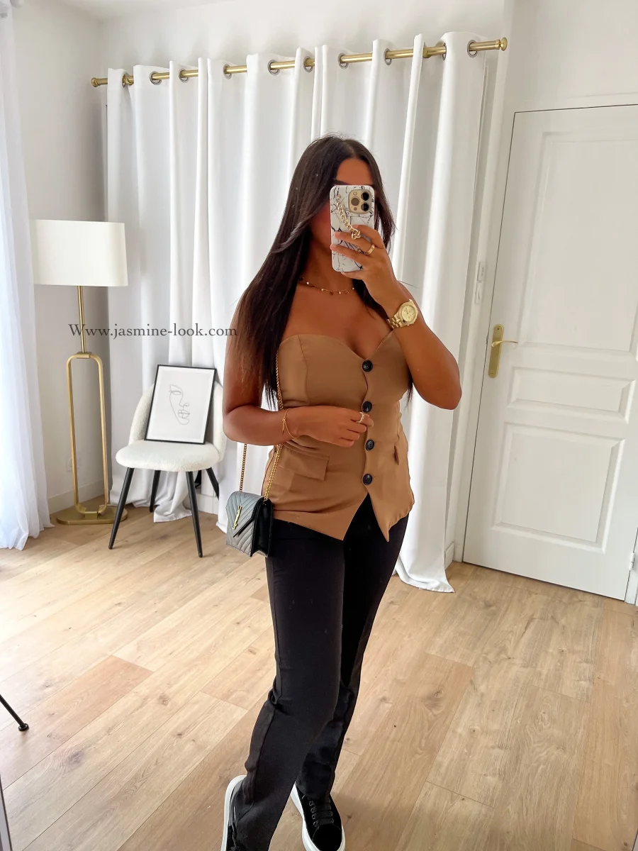 ⚜️Bustier boutonné avec dos élastique ⚜️Taille correct voir grand si entre 2 tailles nous vous conseillons la plus petite. La modèle mesure 1m64 Et porte la taille S/36