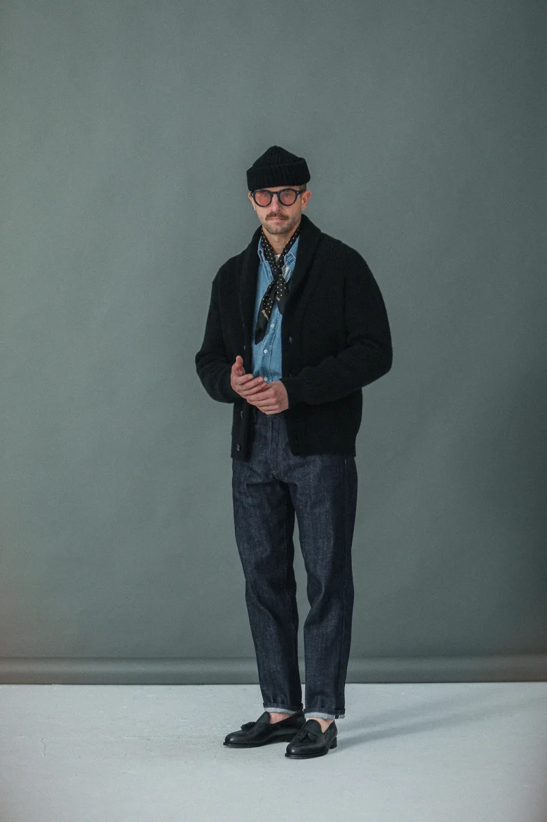 Cardigan en laine lambswool supersoft inspiré des cardigans vintage. Une coupe confortable, un col généreux, un point compact et solide mais souple pour le rendu exact auquel nous souhaitions arriver, un vêtement confortable, durable et avec du style.