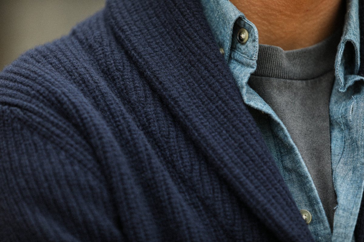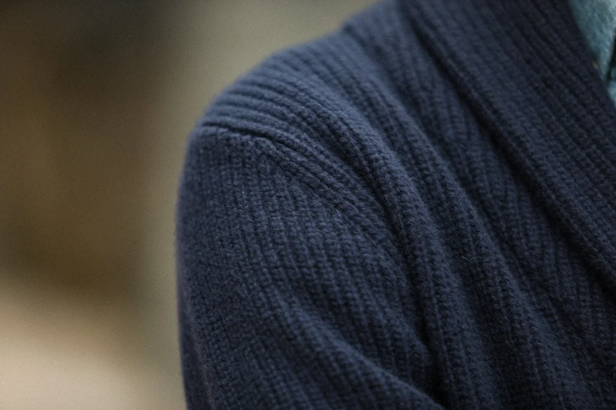 Cardigan en laine lambswool supersoft inspiré des cardigans vintage. Une coupe confortable, un col généreux, un point compact et solide mais souple pour le rendu exact auquel nous souhaitions arriver, un vêtement confortable, durable et avec du style.