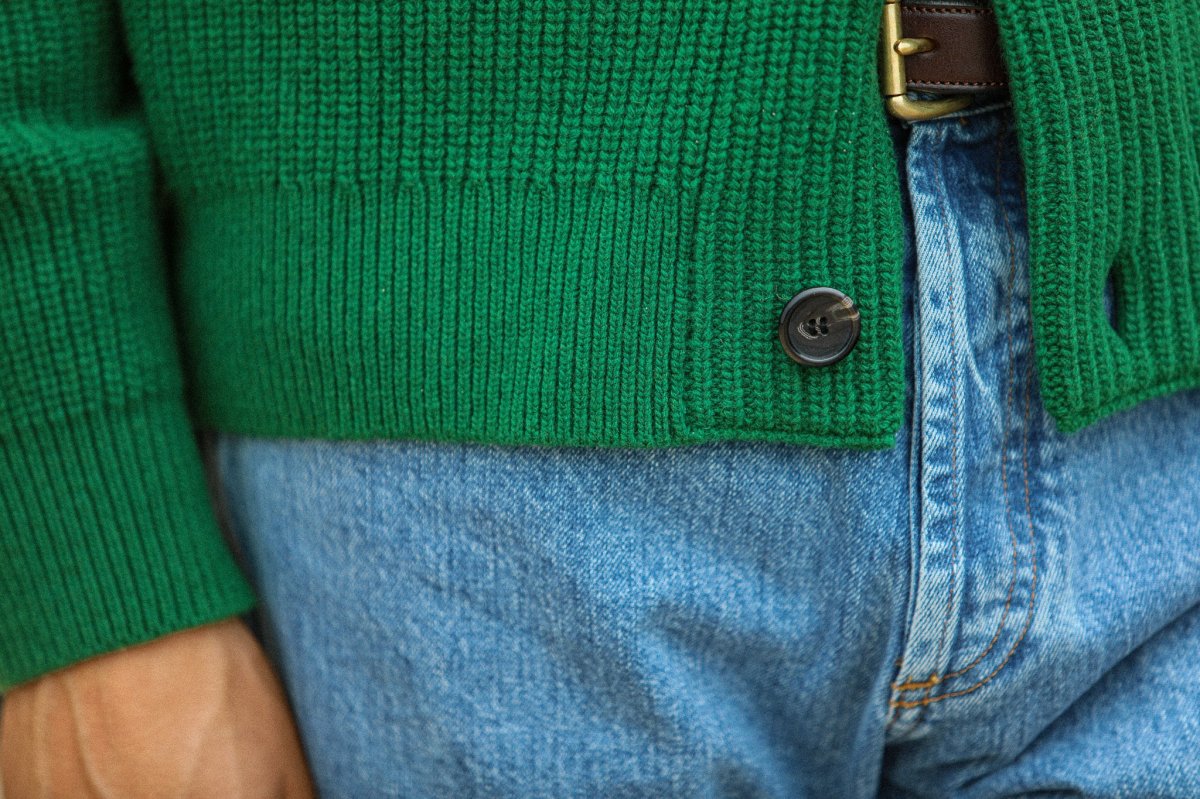 Dernières pièces – Cardigan lambswool inspiré des cardigans vintage. Une coupe confortable, un col généreux, un point compact et solide mais souple pour le rendu exact auquel nous souhaitions arriver, un vêtement confortable, durable et avec du style.