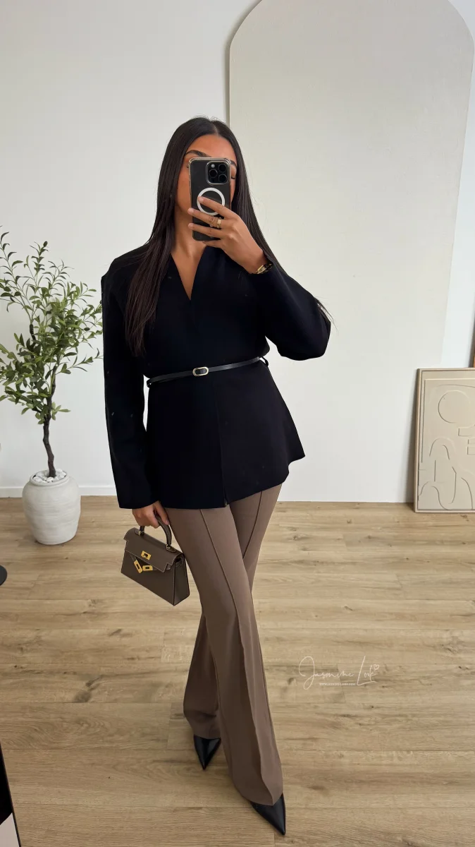 - Cardigan maille épaisse avec ceinture fine coupe mi longue