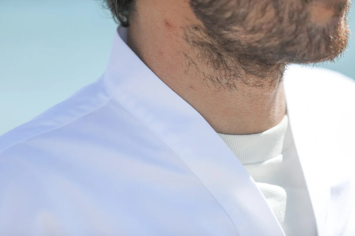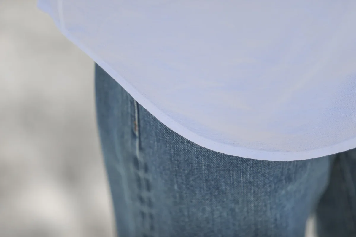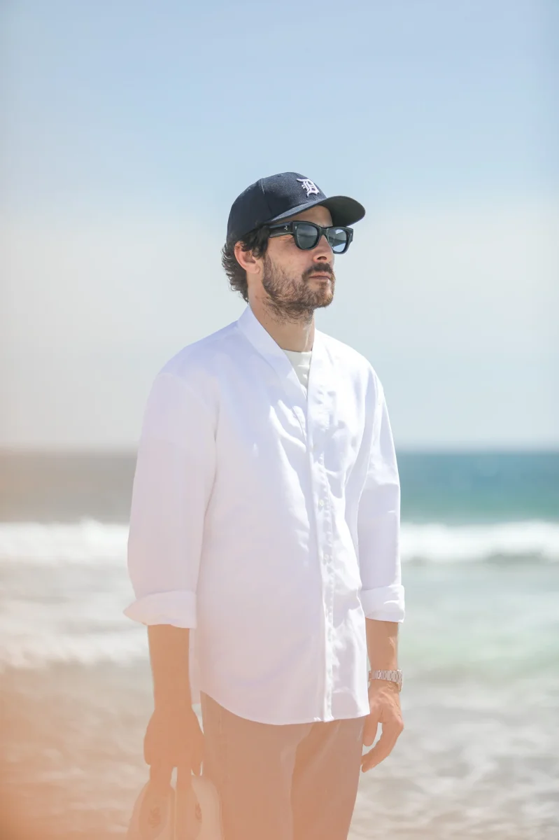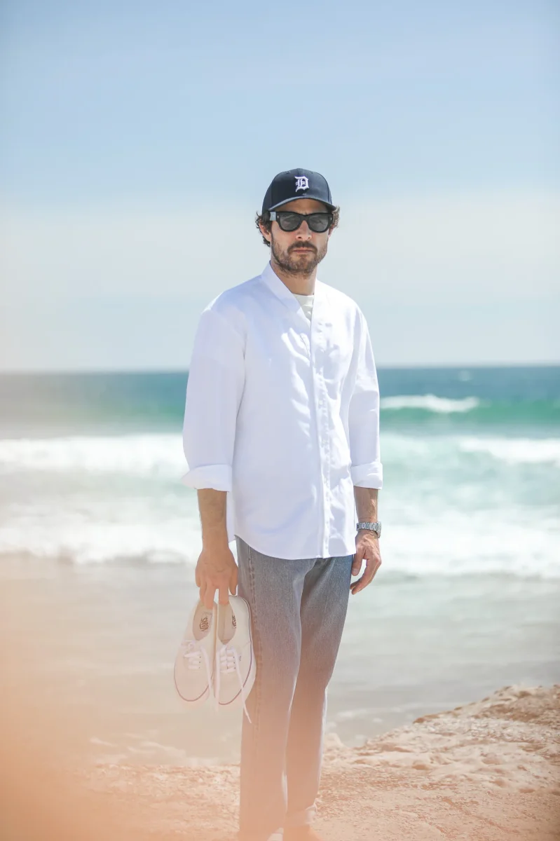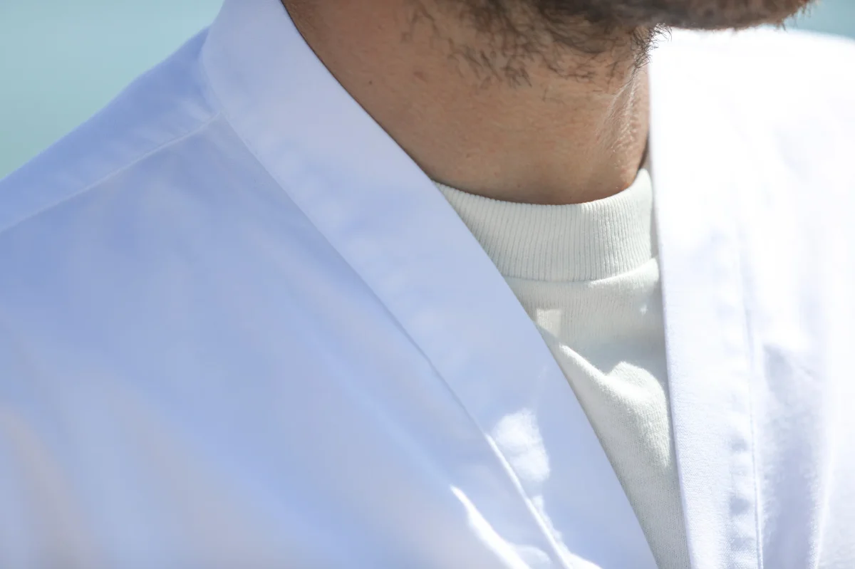 Nouveauté. Chemise à manches longues de type cardigan. Cette chemise est à mi-chemin entre une chemise traditionnelle et une veste / cardigan. La coupe est ample et confortable mais les volumes restent toutefois classiques.