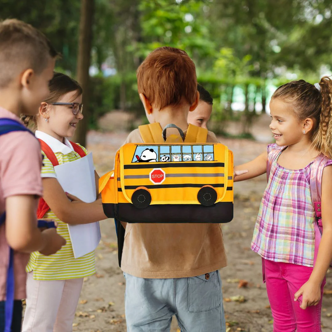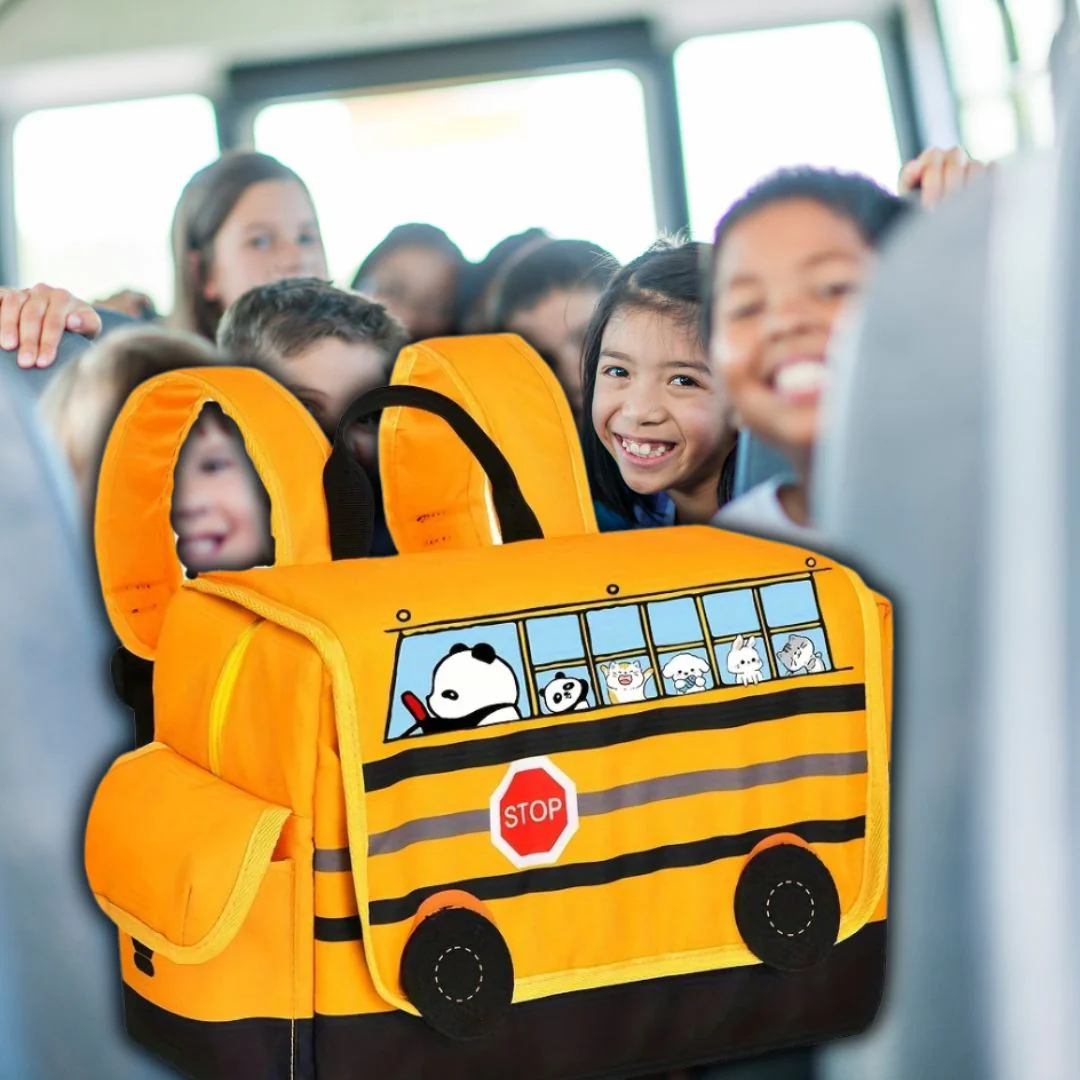 - 🚌 Un motif de bus reconnaissable qui renforce le sentiment d’appartenance à l’école