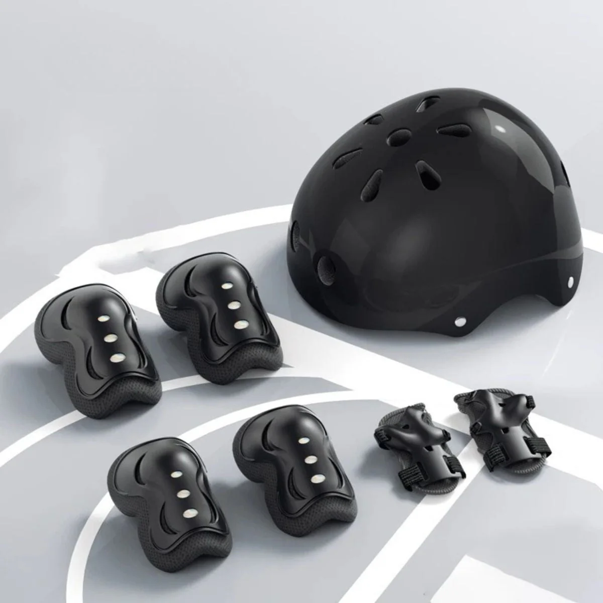 🚲Équipement complet : Comprend un casque, deux genouillères, deux coudières et deux protège-poignets pour une protection optimale.
