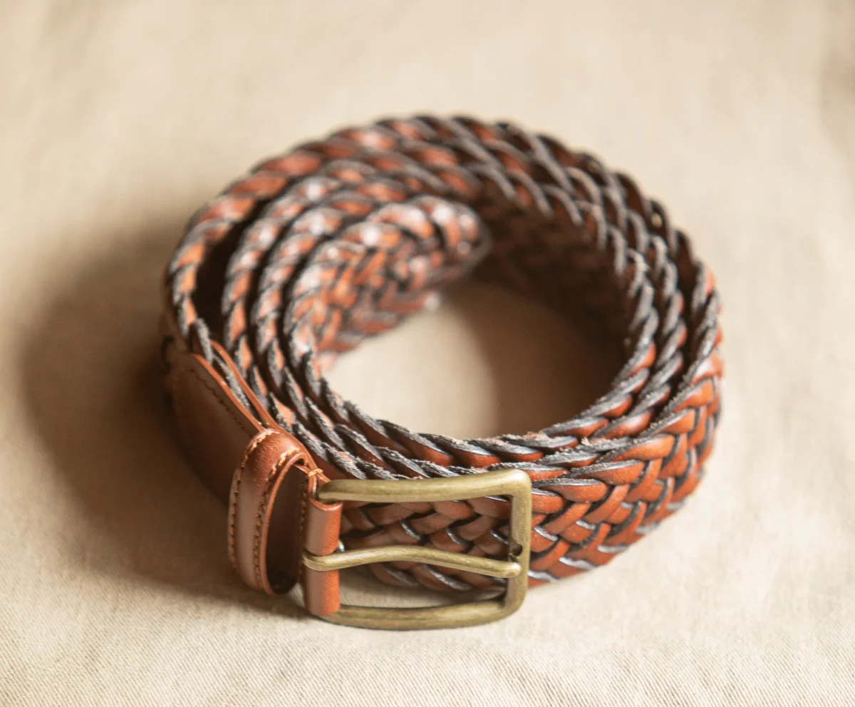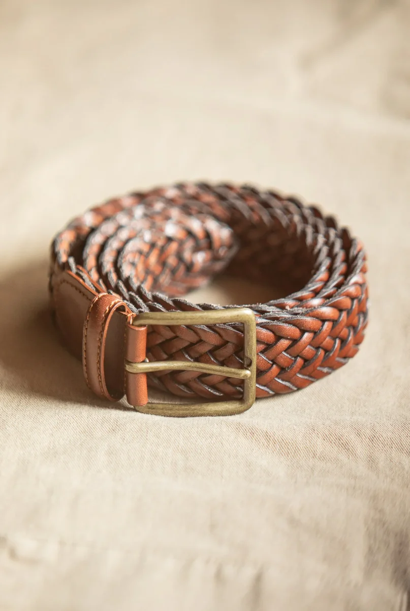 Ceinture Cuir Tressée Cognac