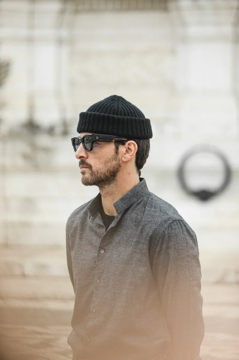 De retour cette saison, notre chemise à col tailleur à l’allure particulièrement élégante, inspiré du vestiaire tailleur, se décline en version hiver dans une très belle flanelle gris chiné. Cette chemise existe aussi en coloris bleu marine.