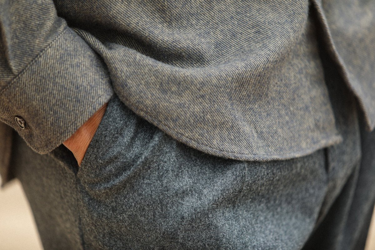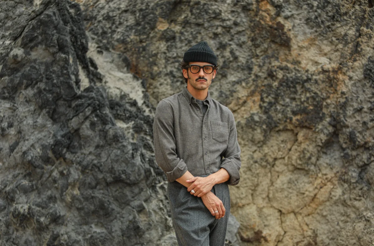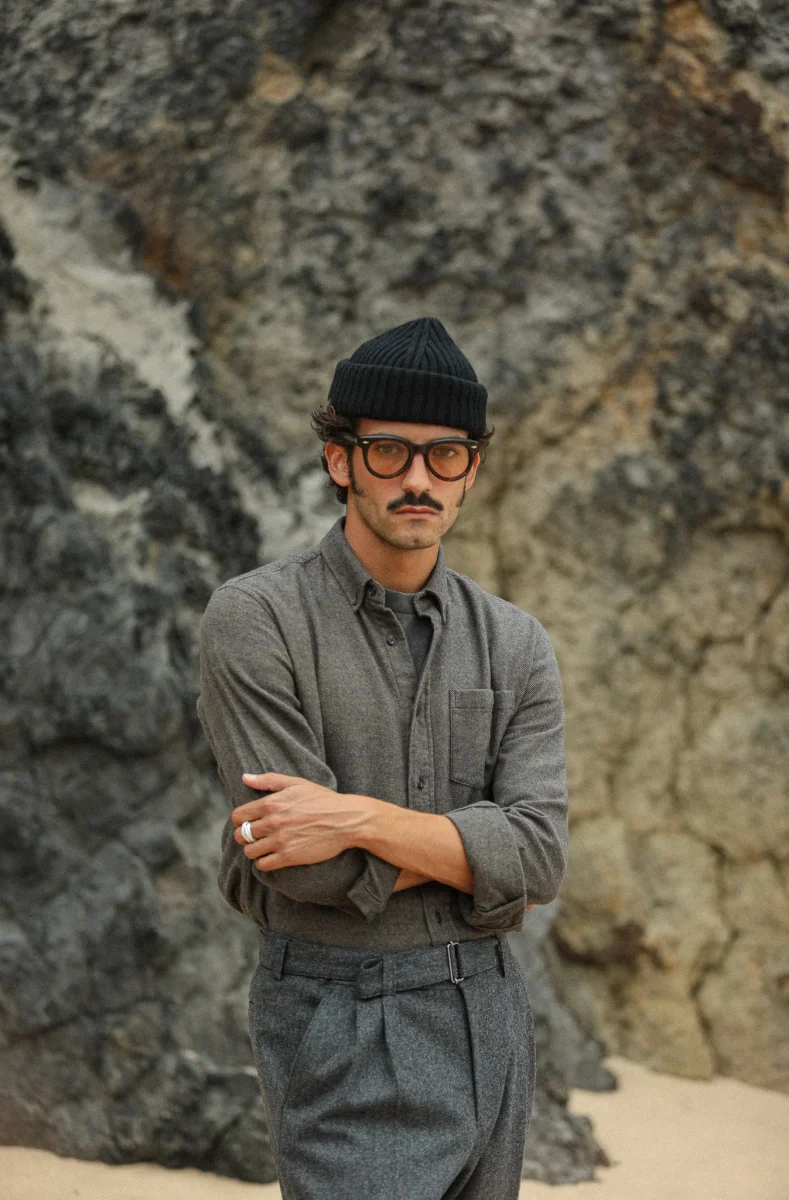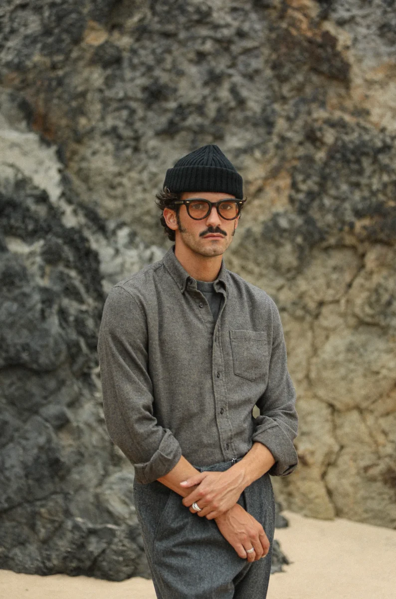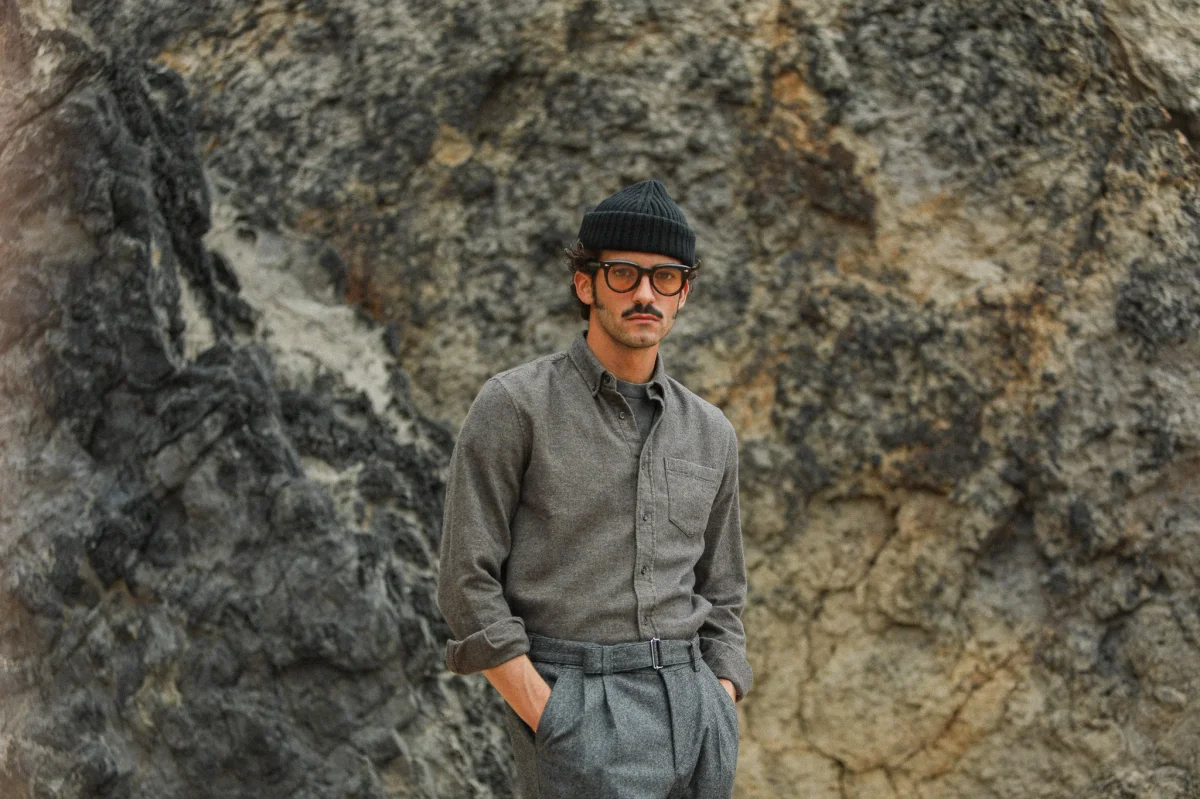 Chemise à col boutonné confectionnée dans une très belle flanelle. Légèrement brossé, le tissu apporte à cette chemise un toucher très doux pour un port particulièrement agréable. Le fit a été légèrement revu pour donner un peu plus de confort.