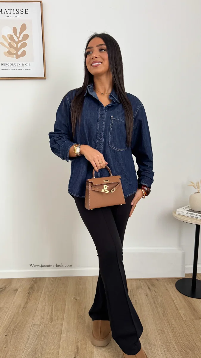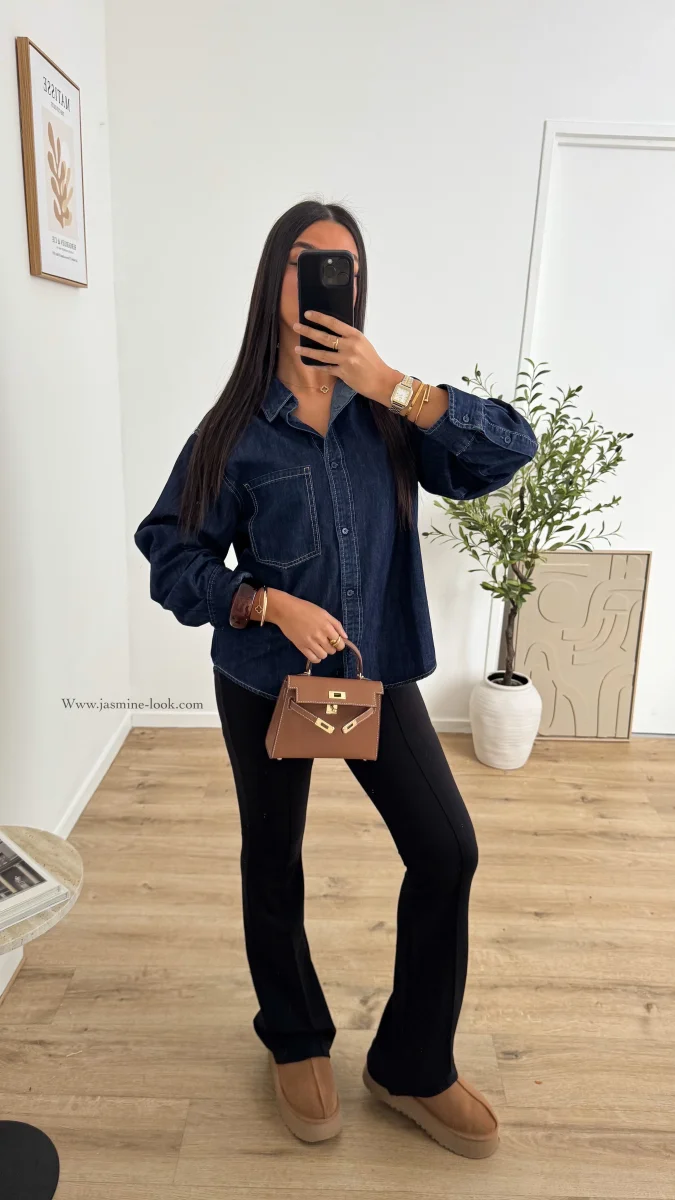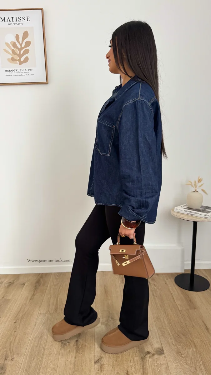 ⚜️Chemise en jean brut coupe ample mi long ⚜️Taille parfaitement , peut être surtailler pour effet plus oversize. La modèle mesure 1m63 porte la taille S/36