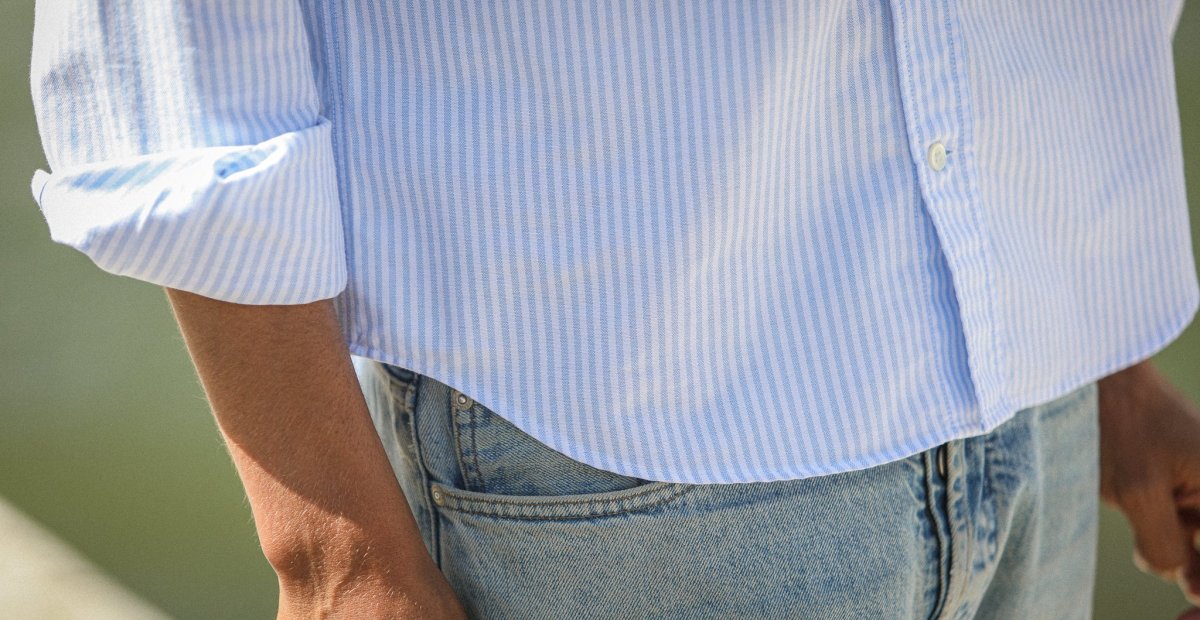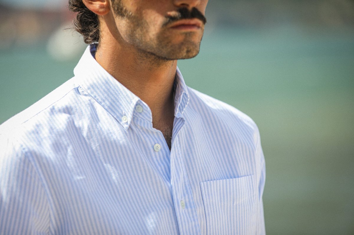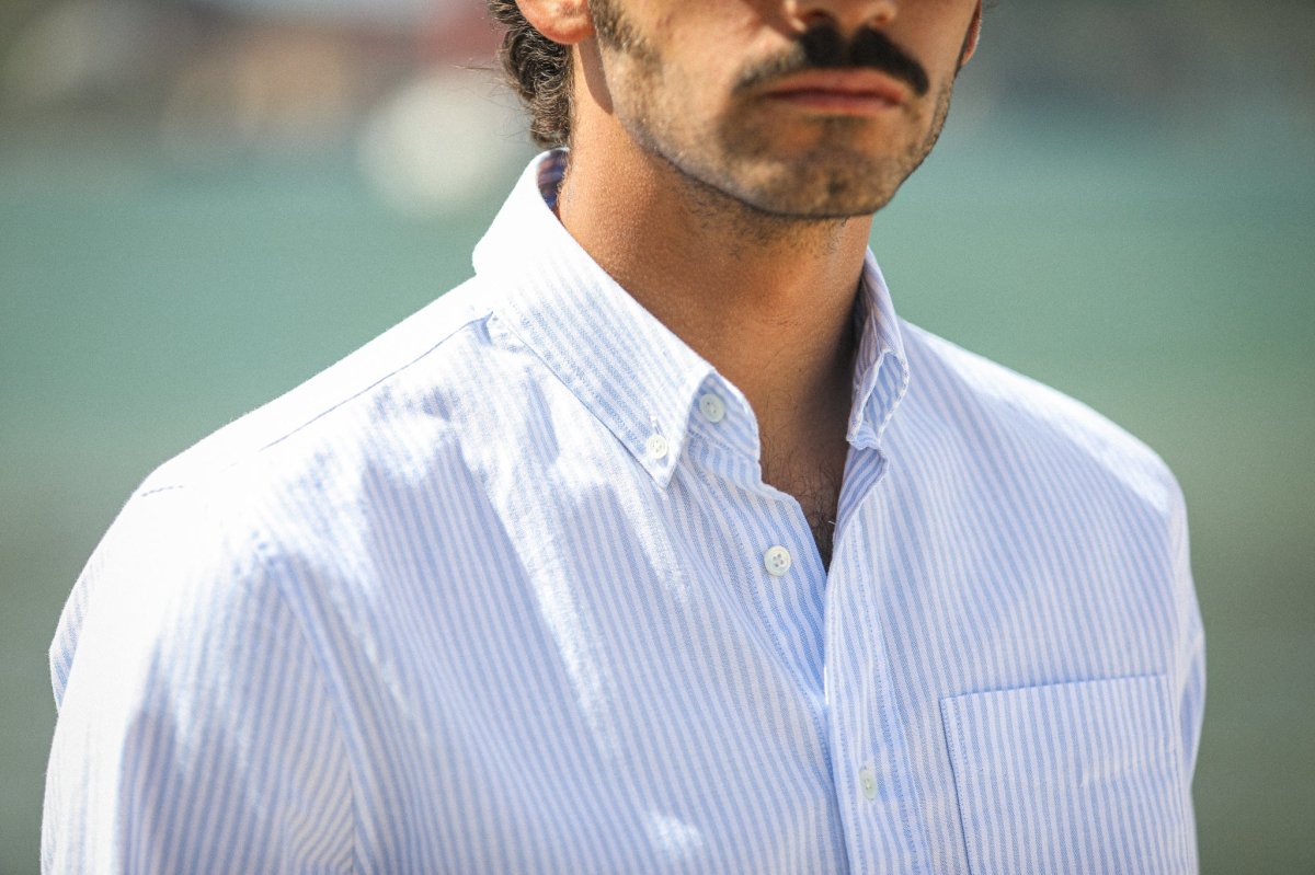 Chemise à col boutonné, confectionnée dans un bel oxford compact blanc à rayures bleu. Déclinée en coupe « Retro fit », plus confortable et d’inspiration rétro, cette chemise au coloris intéressant et très versatile vous accompagnera toute l’année.
