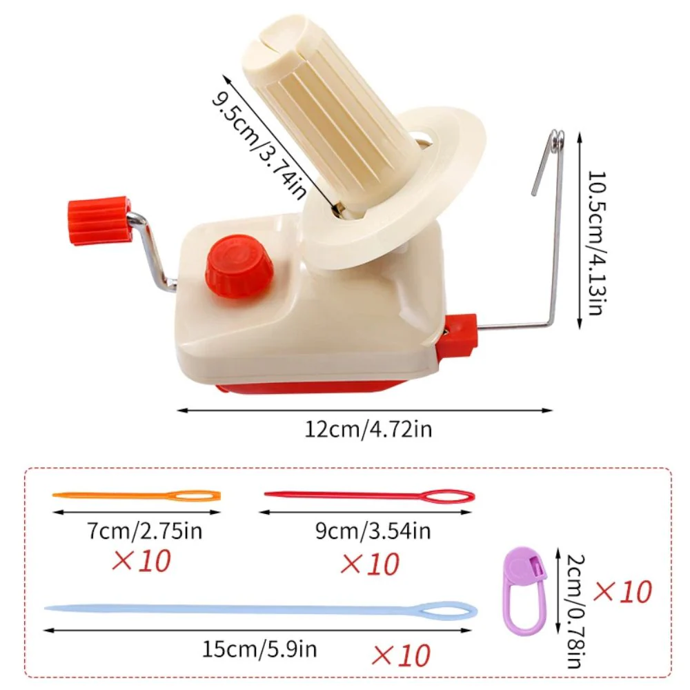 Fixez solidement l’enrouleur sur une surface plane, insérez votre fil, et tournez la manivelle : vos pelotes seront prêtes en un clin d’œil !