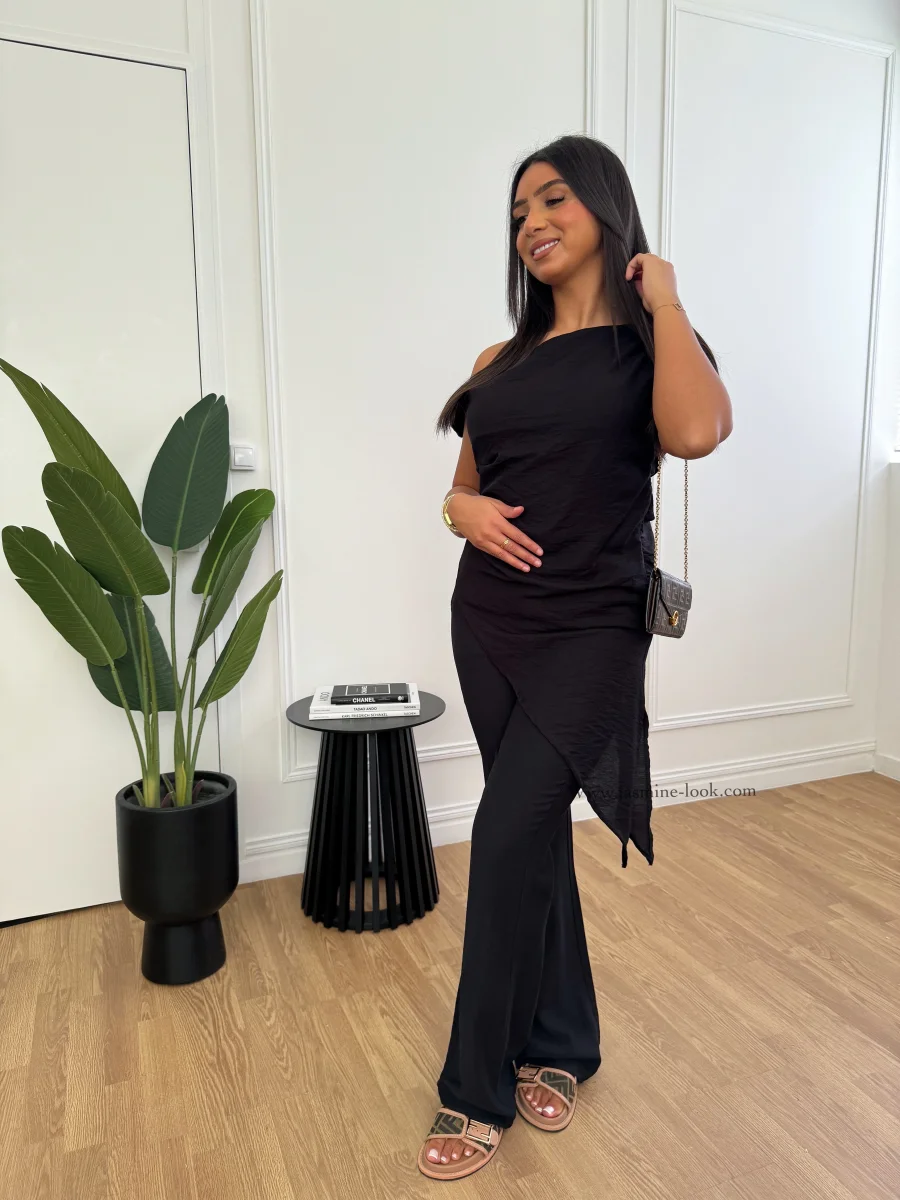 ⚜️Ensemble Effet lin en viscose top drapé avec fente