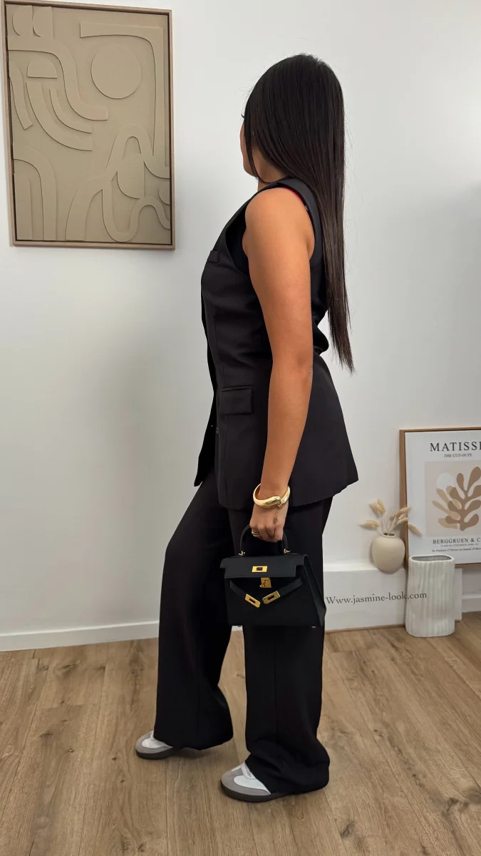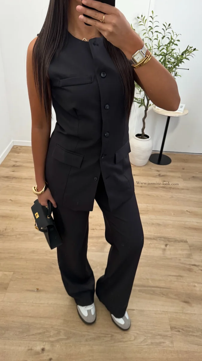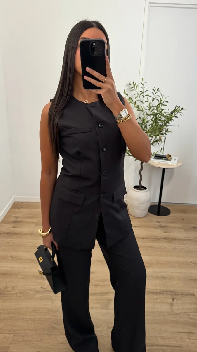 ⚜️ensemble 2 pièces veste sans manche et pantalon coordonnées coupe droite ample .