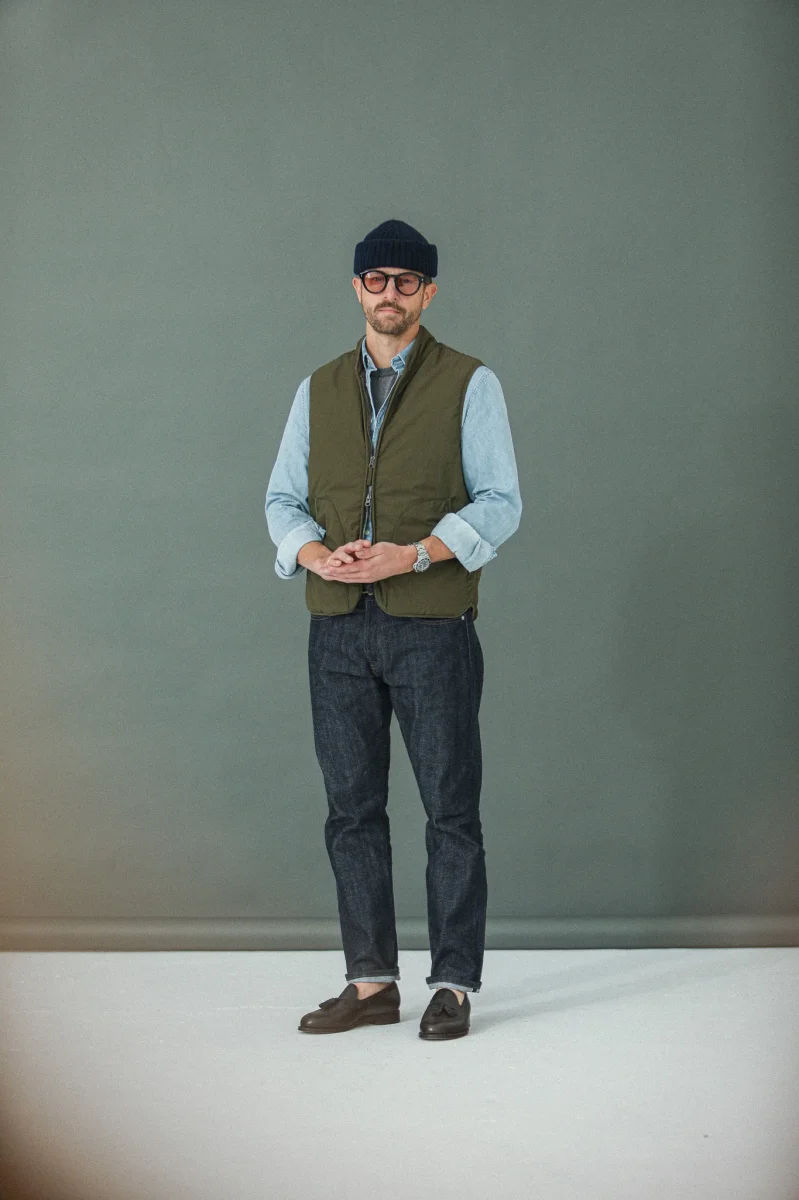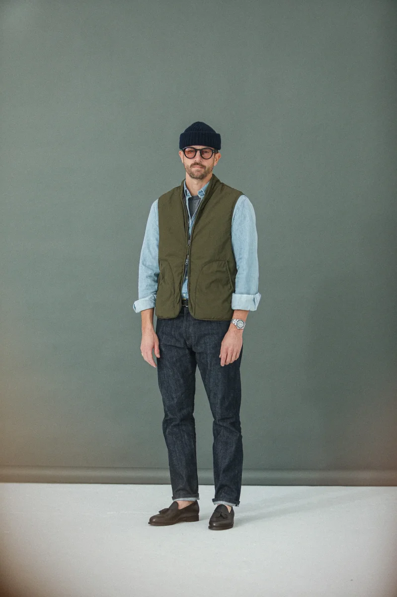 Nouveauté. Gilet matelassée à double curseur en toile technique italienne avec un padding « Primaloft ». En tandem avec notre atelier partenaire, nous avons développé cette nouvelle pièce qui faisait défaut dans nos collections. Il s’agit d’une pièce très versatile, légère et thermorégulante grâce à son padding « primaloft ». A porter sur un tee-shirt pour les mois les plus chauds et sous votre manteau dès que les températures baissent ! Le coloris khaki et les finitions haut de gamme permettent les associations avec tous types de tenues tant casual que plus habillées.