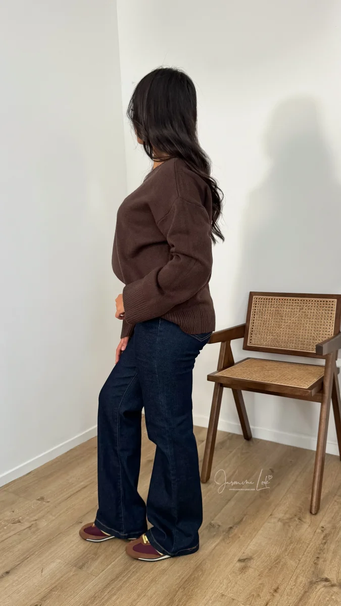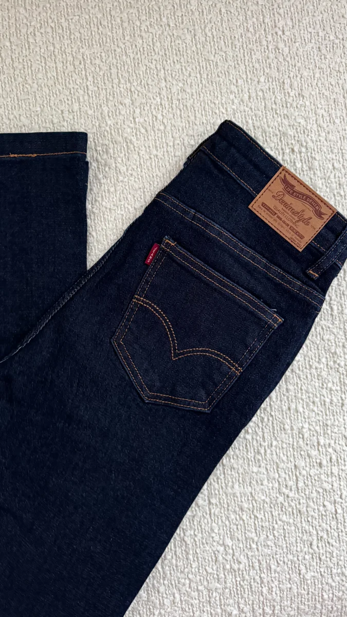 - Jean avec élasthanne taille haute coupe longue coloris brut