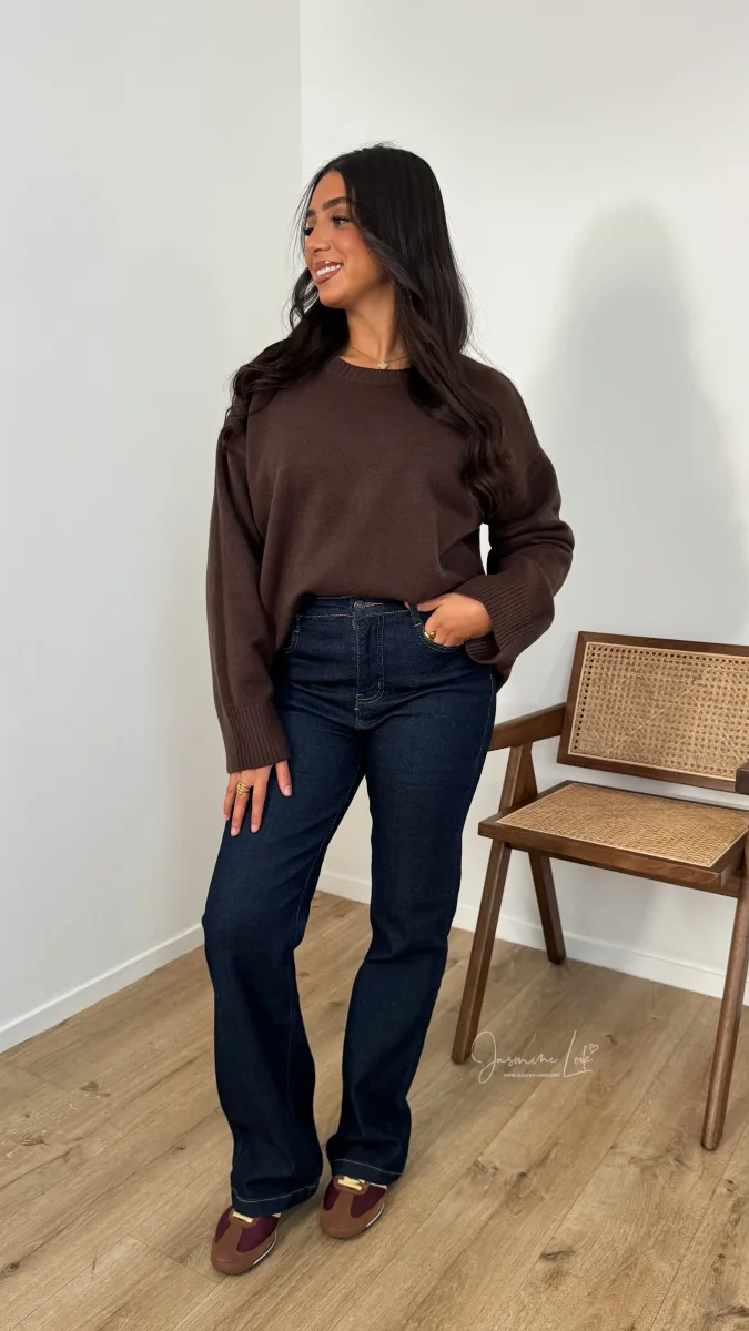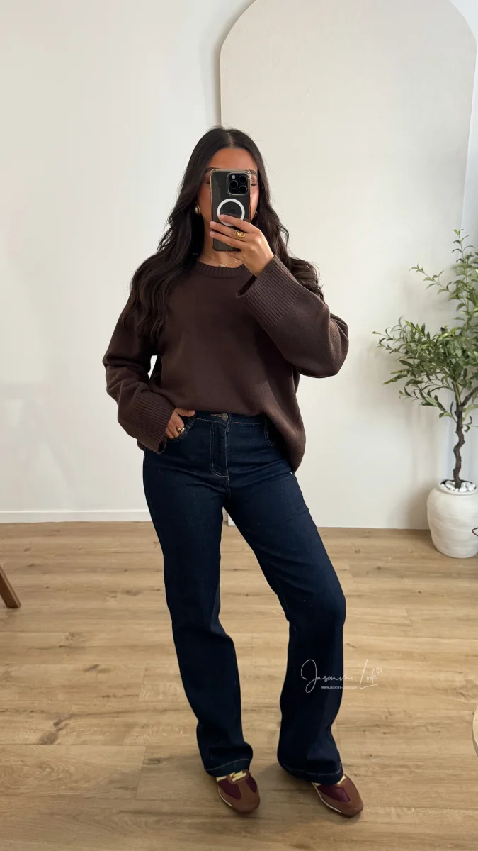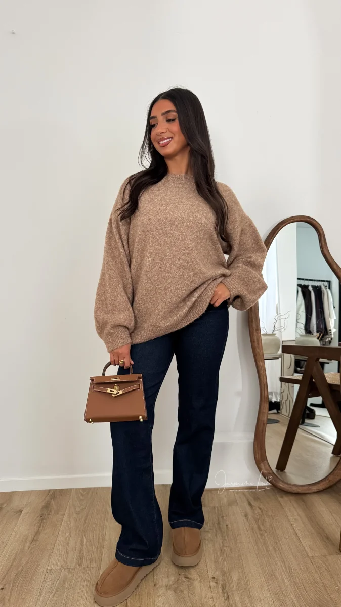 Jean avec élasthanne taille haute coupe longue coloris brut Il taille correctement voir grand si entre 2 tailles > modèle bien stretch ! La modèle mesure 1m63 et porte la taille M/38