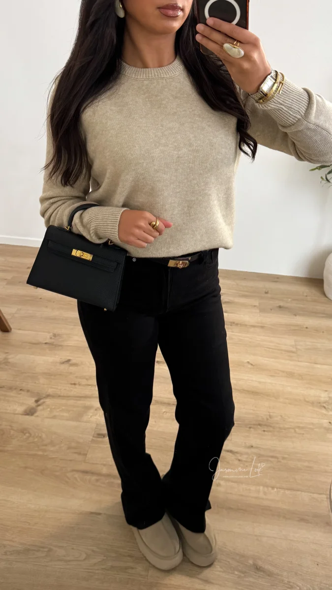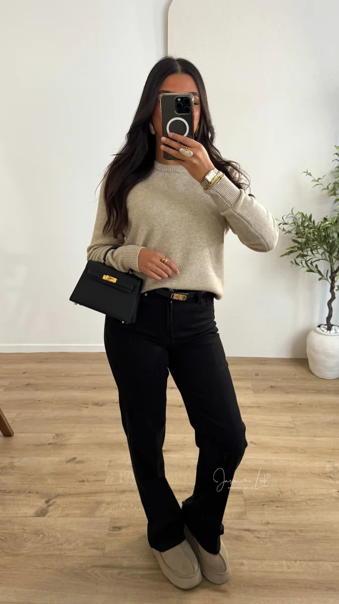 Jean taille haute coupe Wild droite, matière strech Taille correctement si entre 2 tailles nous recommandons la plus Grande . La modèle mesure 1m63 porte la taille S/36