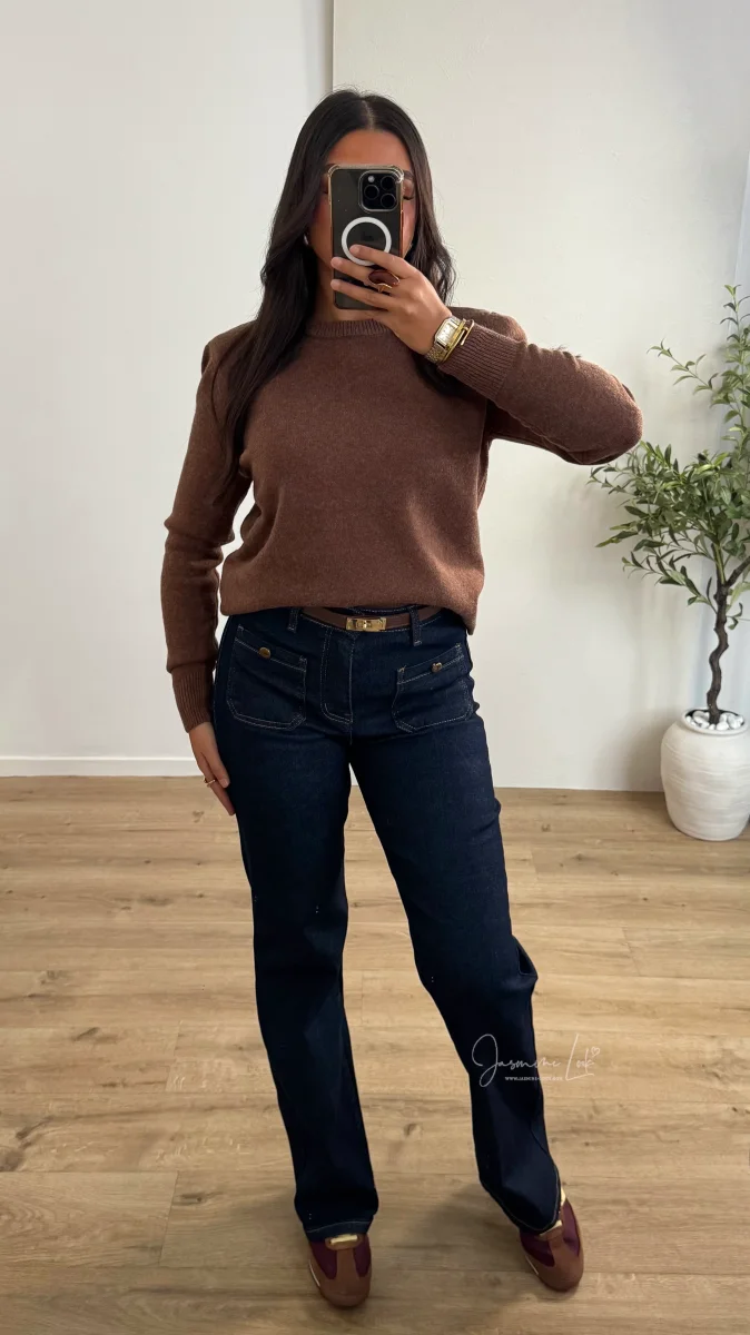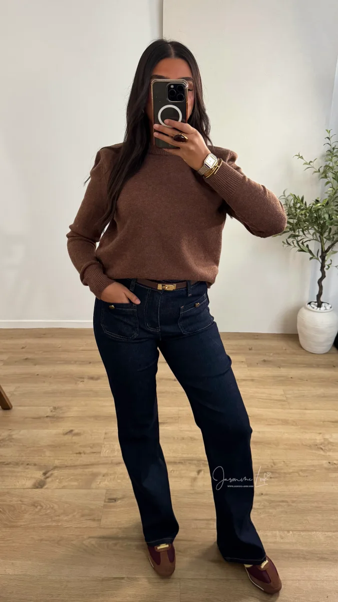 - Jean taille haute élastique avec détail poche