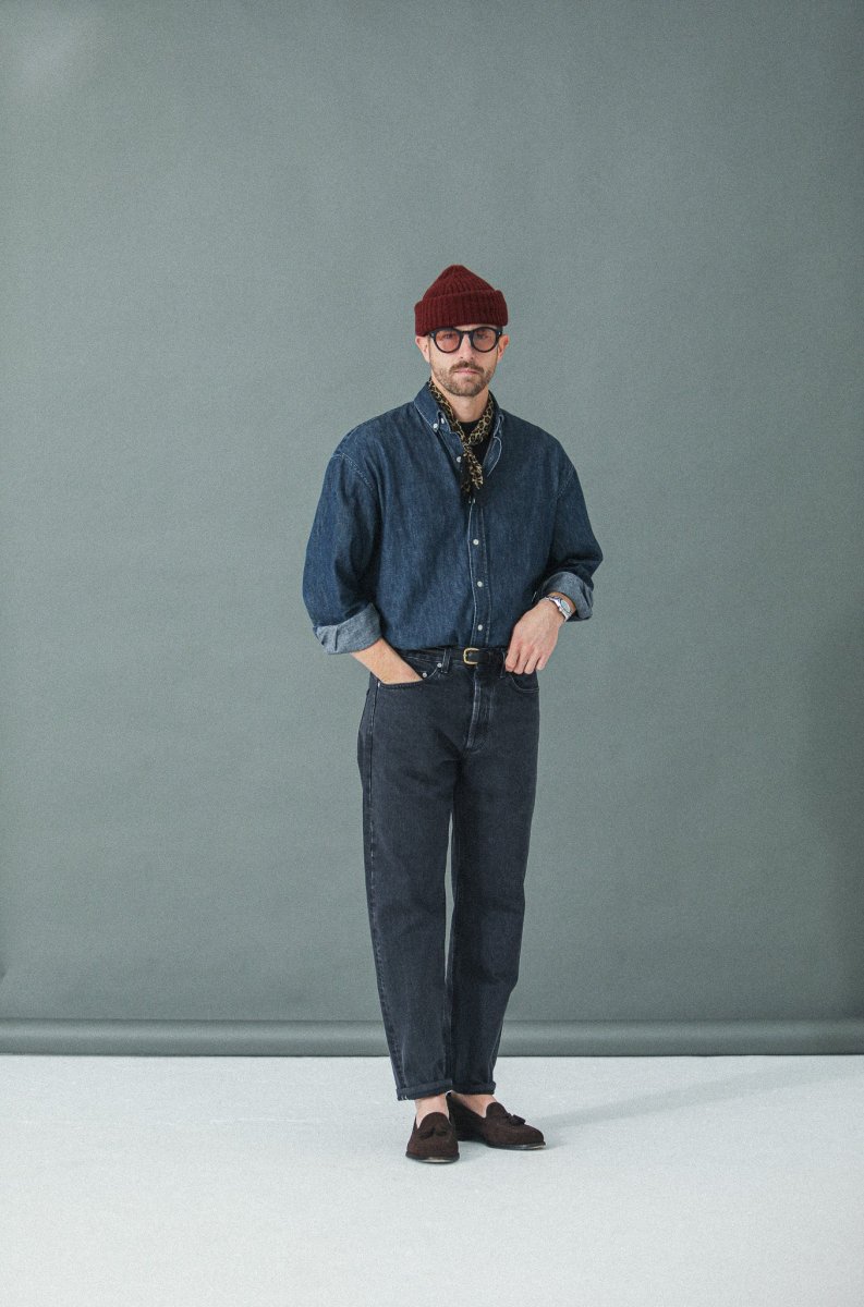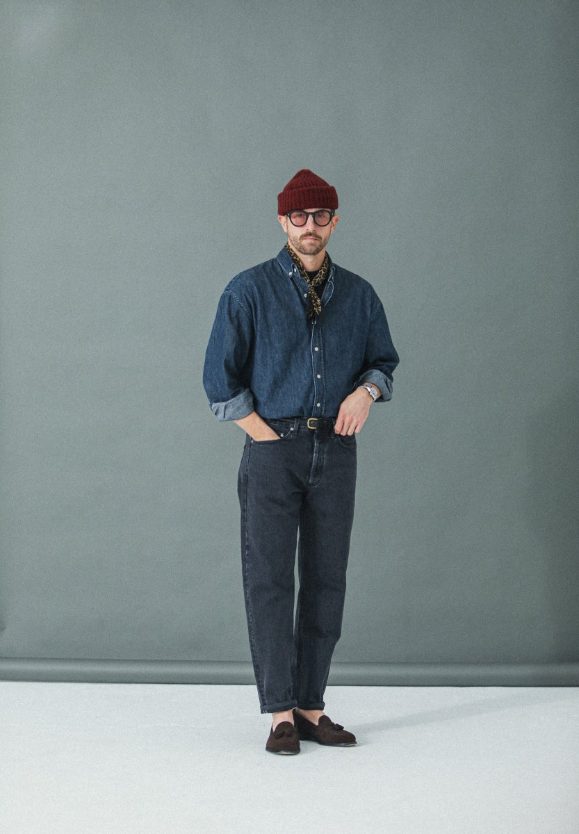 Notre jean « Athletic Fit », modèle phare de nos collections depuis plusieurs saisons, inspiré des coupes vintage avec une jambe confortable, se décline cette saison dans une très belle toile denim selvedge noire à laquelle nous avons appliqué un lavage de type stonewash.