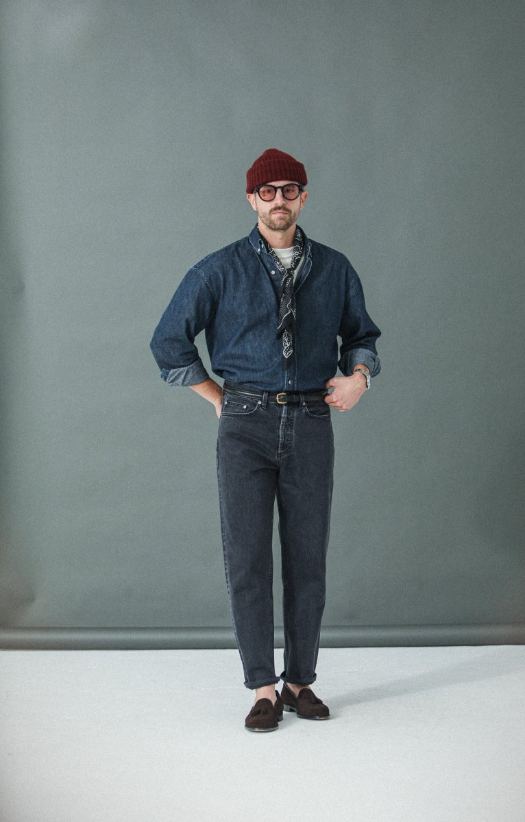 Nouveauté introduite cet hiver, nous complétons notre proposition de jeans par cette nouvelle coupe « Comfort Fit ». Comme son nom l’indique, cette coupe est particulièrement confortable et constitue la coupe la plus large et confortable de notre gamme. Avec sa taille haute, sa fourche très basse et des mesures de cuisses amples, ce jean confectionné dans une très belle toile selvedge noire délavée est réservé aux amateurs de coupes amples ou aux physiques sportifs.