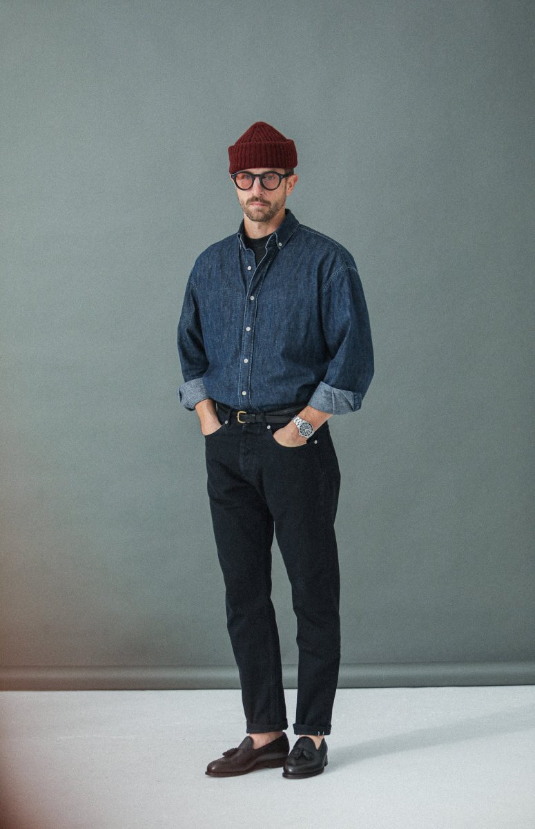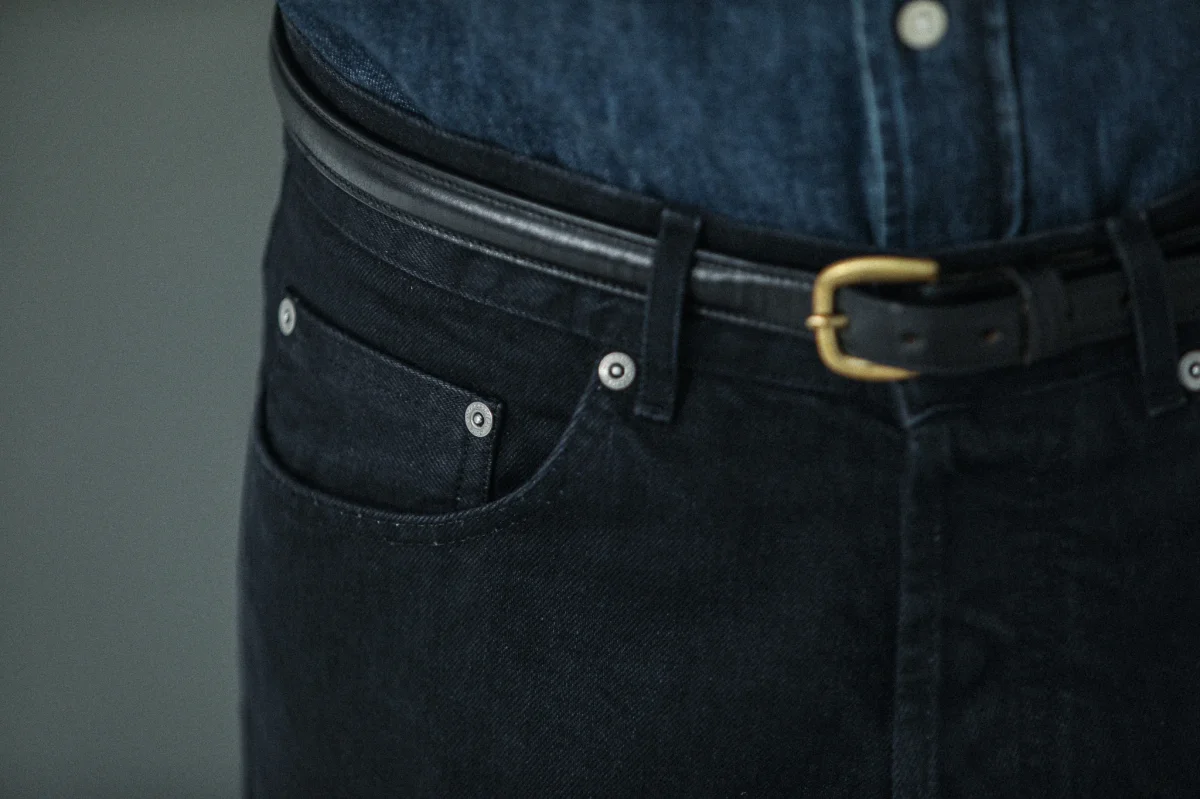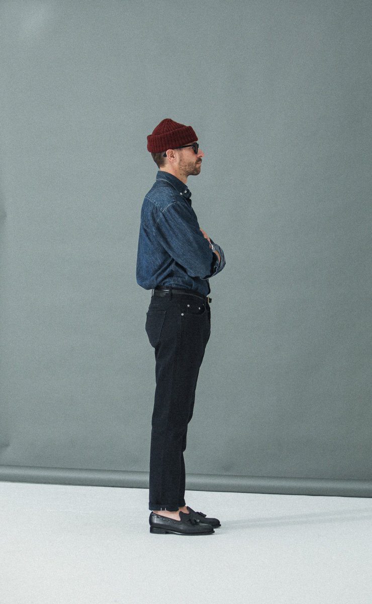 Nouveauté. Nous déclinons notre proposition de jeans dans une coupe « tapered », plus confortable. Ce jean est confectionné dans une très belle toile selvedge au noir profond.