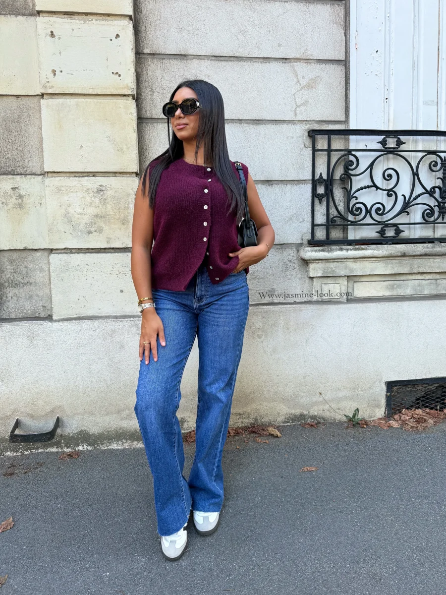 ⚜️ Jean Strech taille haute coupe Wideleg , ourlet frange