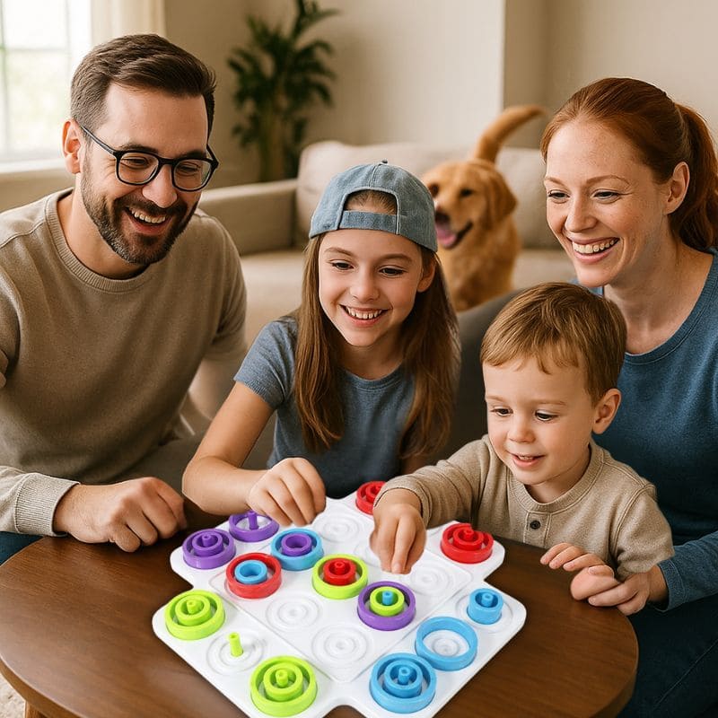 Plongez dans le jeu de stratégie TOC–TOC–BOOM™ où chaque décision compte, chaque move rapproche la victoire… et chaque partie rapproche votre famille ! Facile à apprendre, impossible à lâcher, ce jeu transforme un simple après‑midi en un moment de rires, de défis et de complicité.