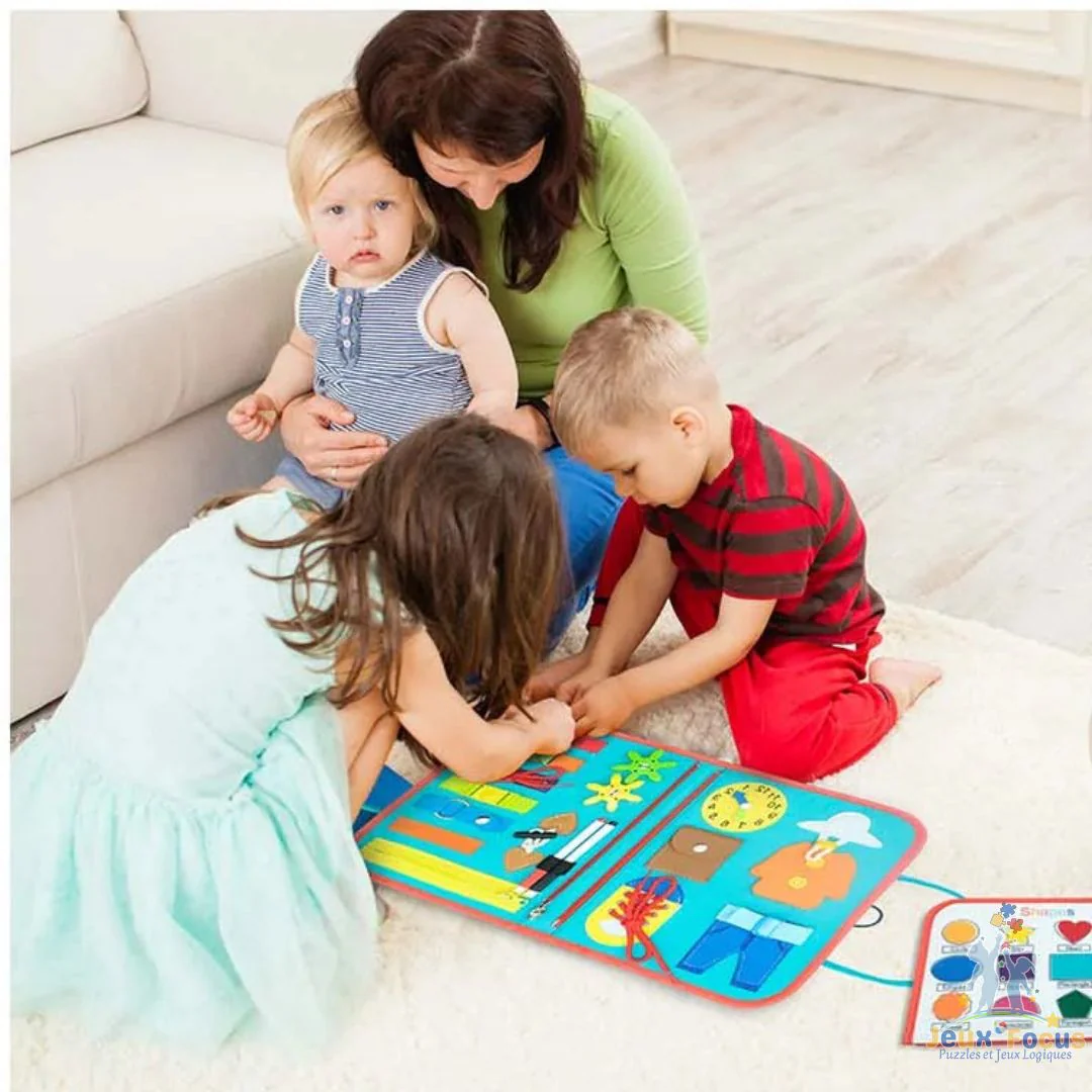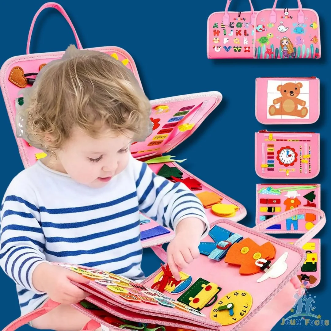 Le jeu Montessori aide votre enfant à développer sa concentration et son autonomie sans effort puisqu’il joue. Avec notre Busy Board Montessori, transformez de simples moments en sessions d’apprentissage précieuses.