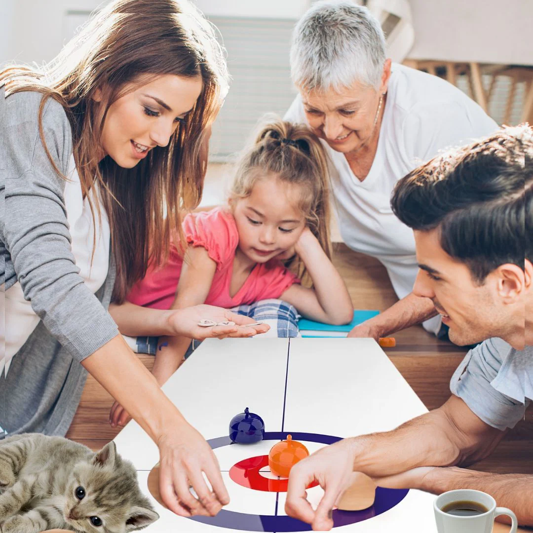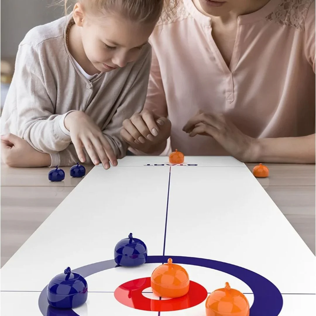 Plus vous jouez, plus vous affinez votre technique. Transformez votre salon en arène de compétition ! Avec 8 pierres à faire rouler sur un tapis glacé glissant, reproduisez l’ambiance d’une véritable partie de curling.