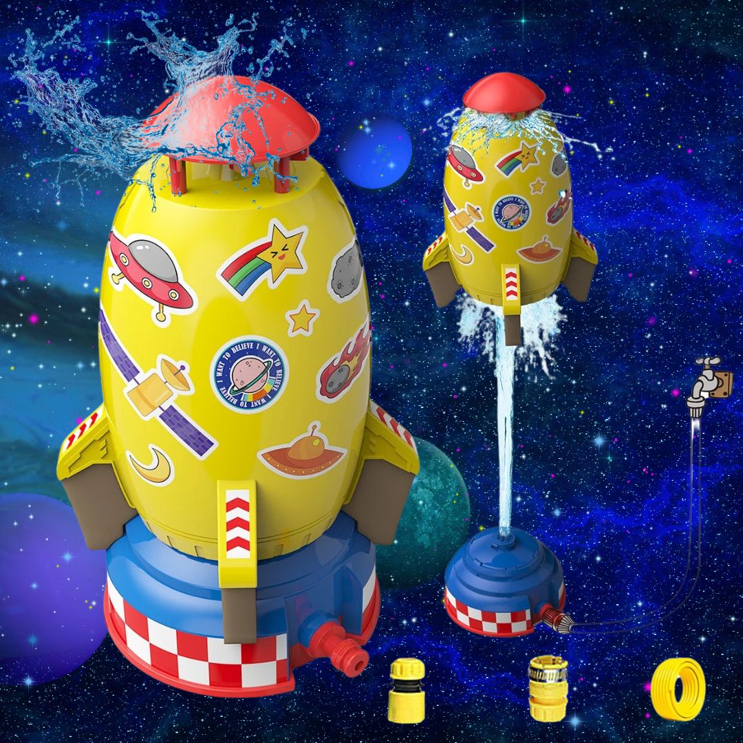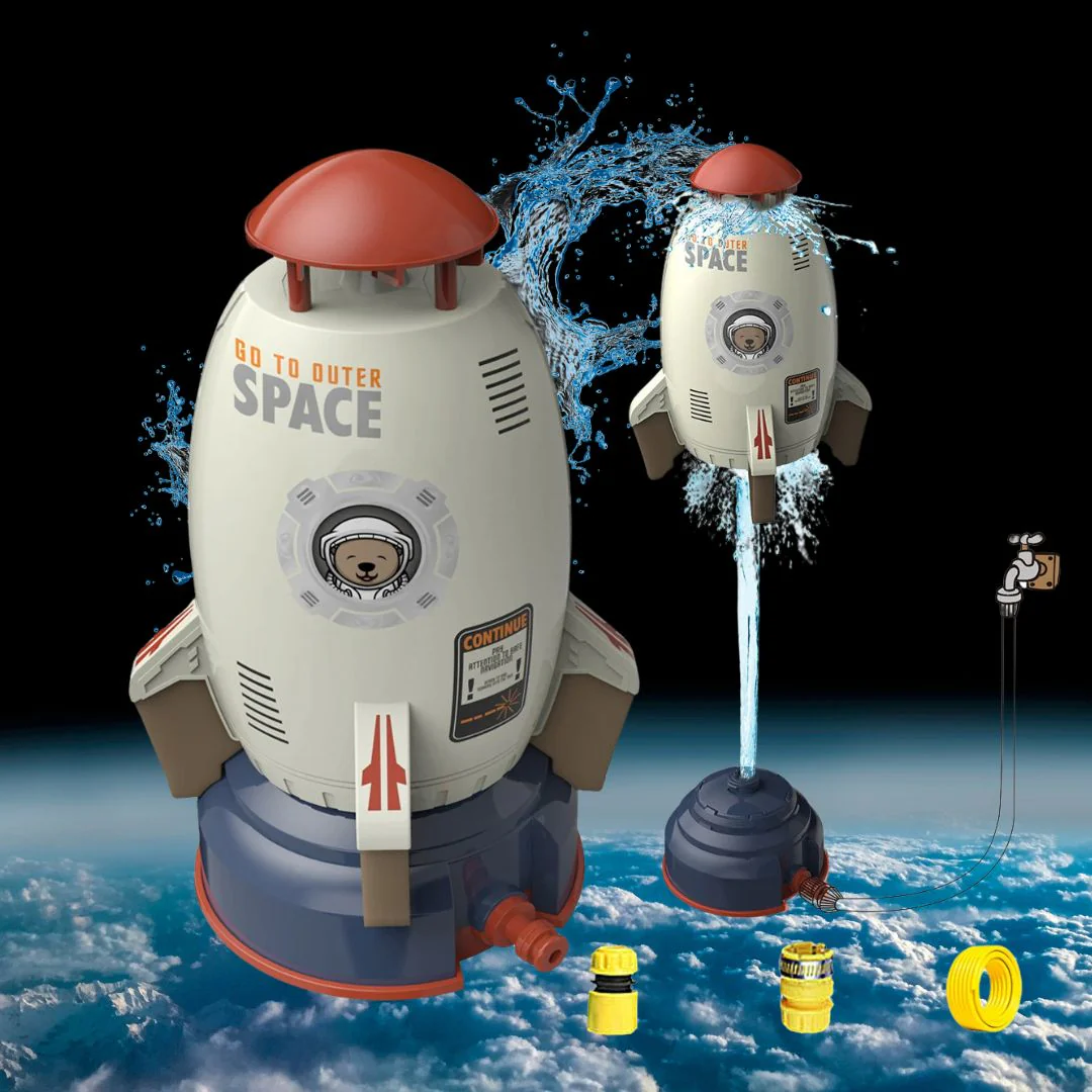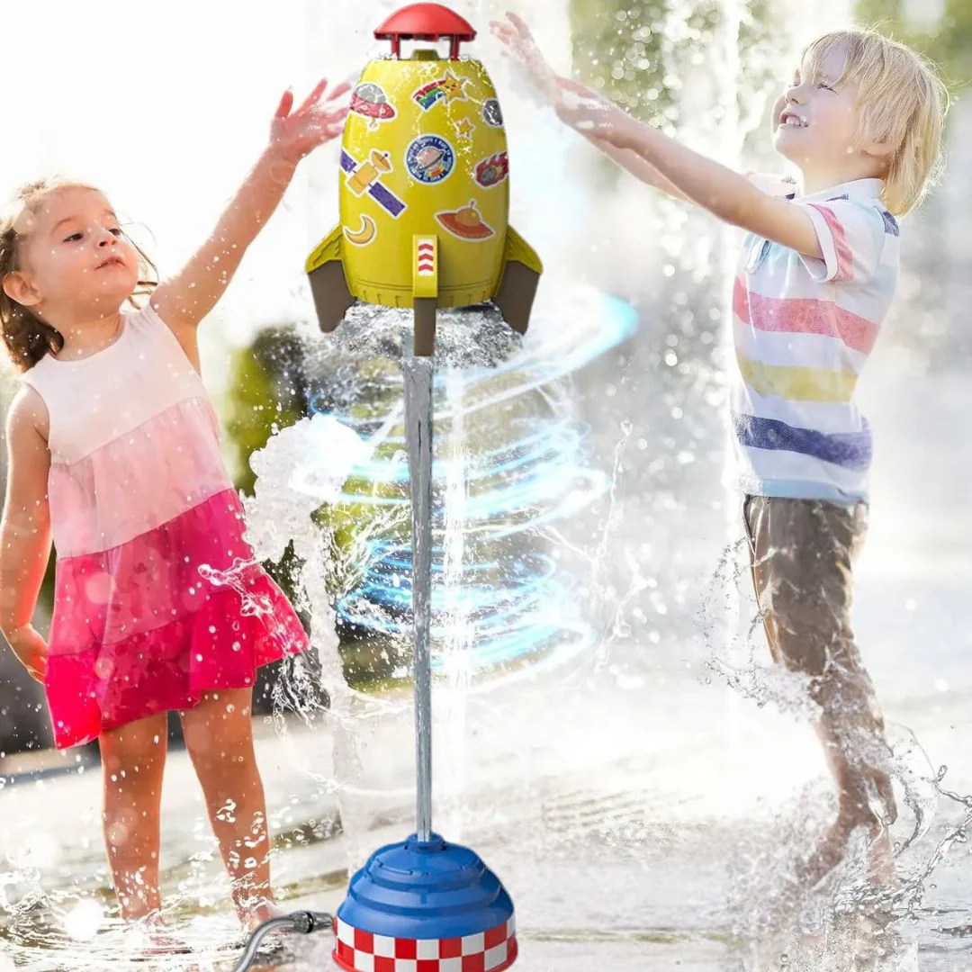 En plus de rafraîchir les enfants les jeux d’eau supportent une fusée ou un autre jouet selon le modèle choisi.Les jouets 🚀se soulèvent grâce à la pression de l’eau .