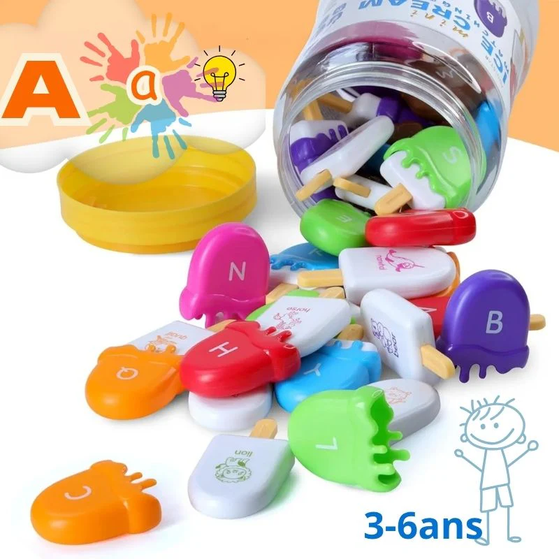 Jeux enfant 4 ans Montessori: 52 GLACES À L’ALPHABET™