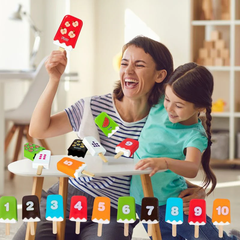 Avec notre jeu Montessori, mémoriser et reconnaître l’alphabet et les chiffres c’est excitant et stimulant. Il suffit de manipuler, associer et trier des glaces et leurs garnitures colorées.