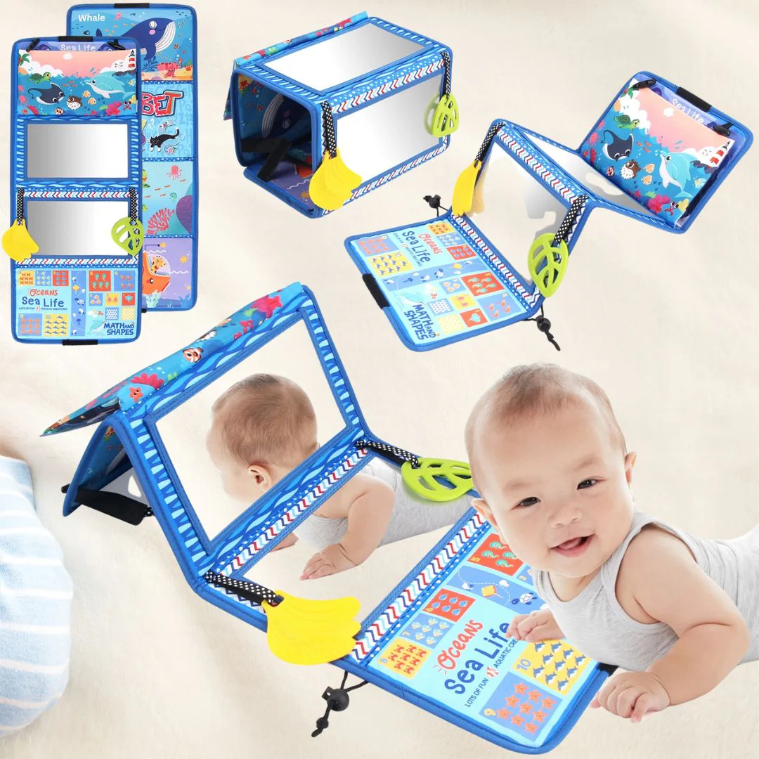 JOUET BÉBÉ 6MOIS et+| Livre en tissu, Miroir de sol pour bébé pour bébé🪞👶