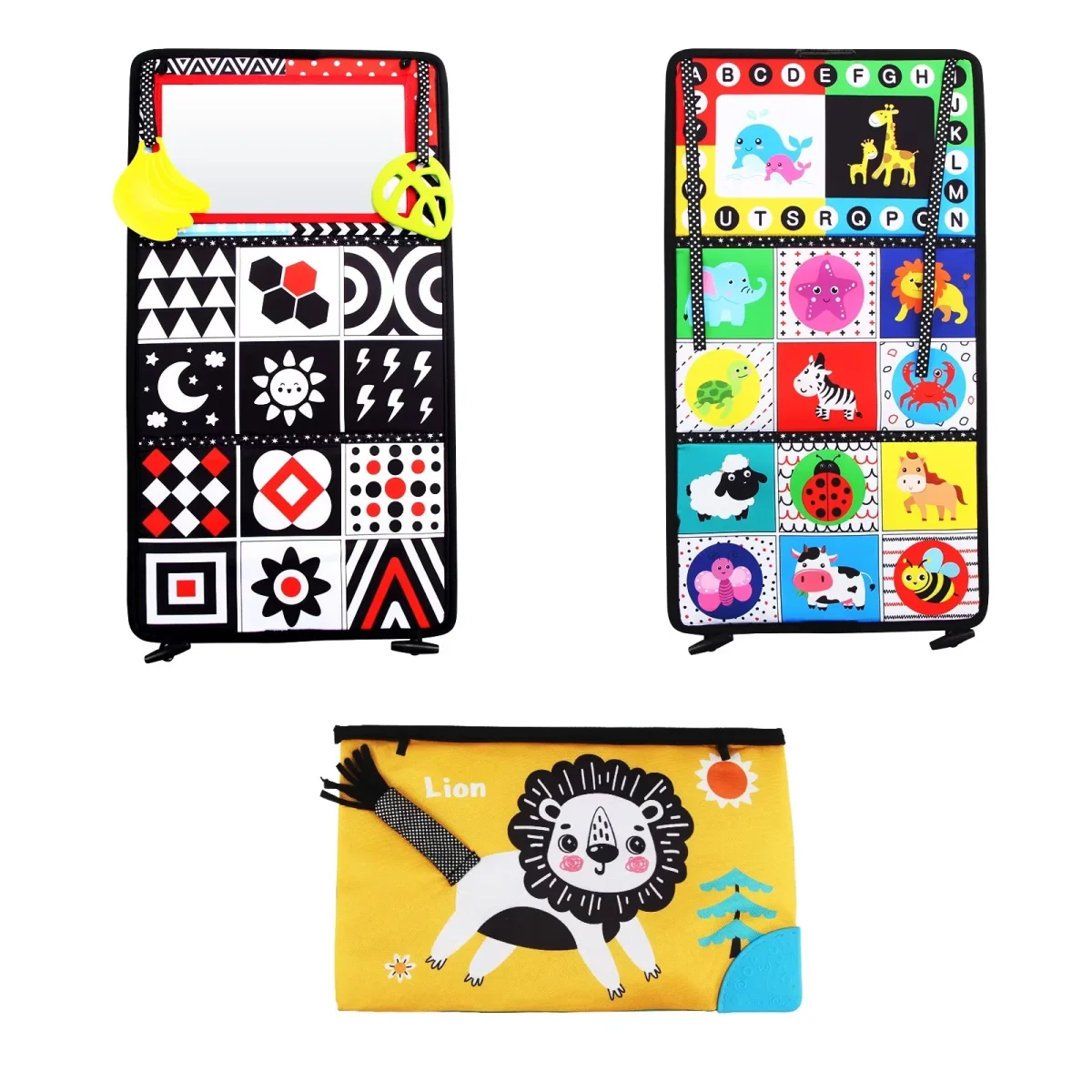 Les illustrations et le miroir captivant stimulent la coordination œil-main et la motricité fine. Grâce aux attaches velcro et à la conception sécurisée, bébé est libre d’explorer et d’apprendre par lui-même.