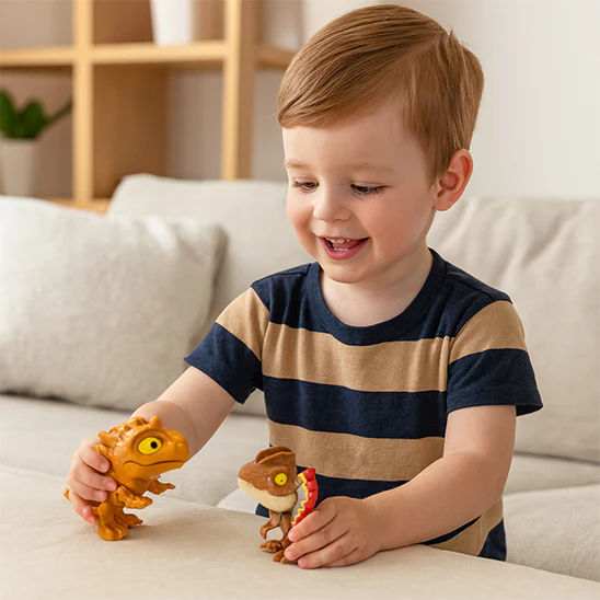 Grâce à leurs gueules spécialement conçues pour « croquer » les petits doigts, ces jouets dinosaures stimulent l’imagination et développent la motricité fine de votre enfant.