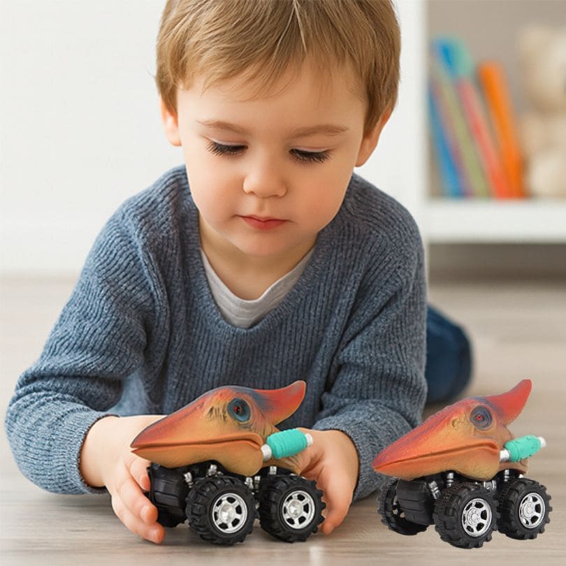 Des jouets dinosaures, qui marient 2 passions: Les voitures et les monstres de la préhistoire! Notre collection unique de dinosaures, voitures à tirer et mini camions monstres offre une expérience de jeu créatif où l’imaginaire est la seule vérité.