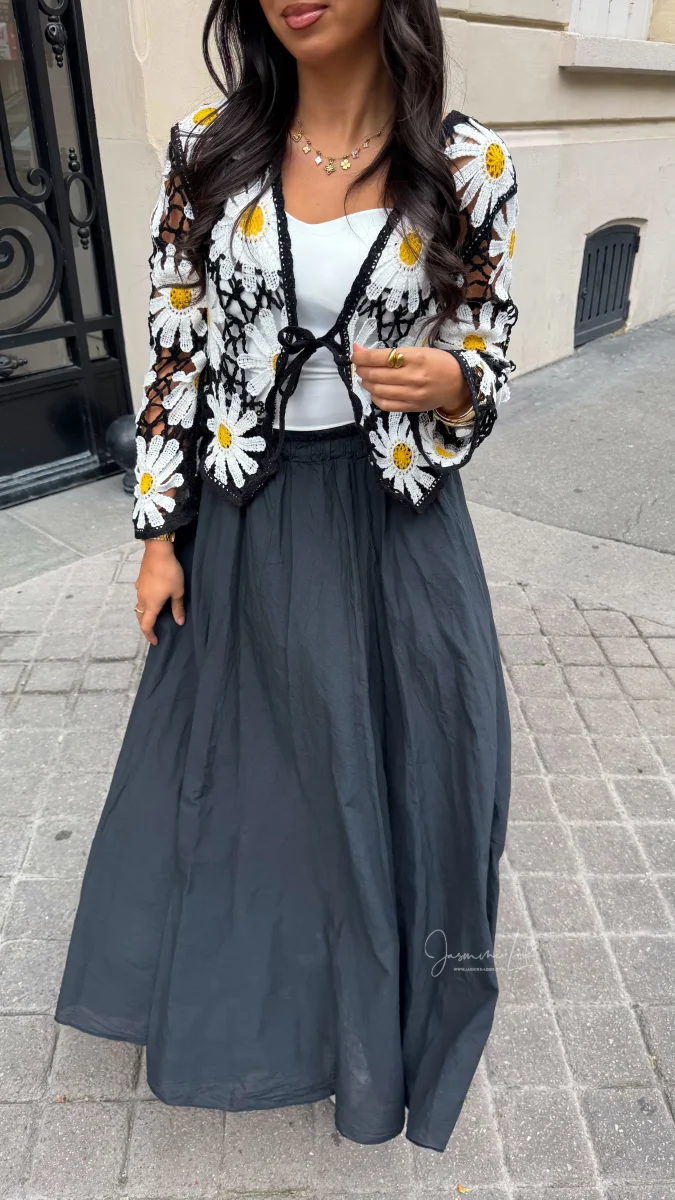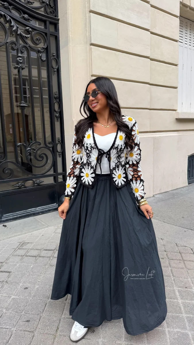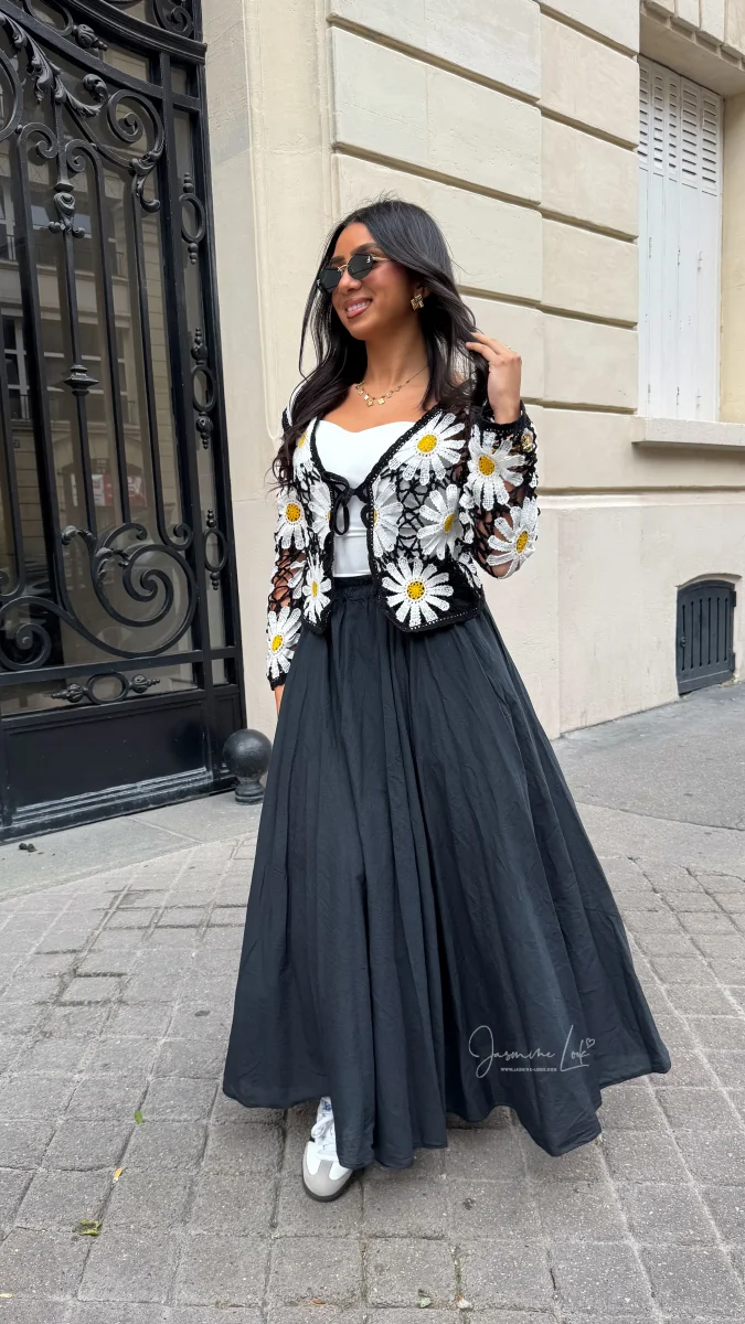 ⚜️Jupe évasée cotton avec doublure et taille élastique ⚜️Taille unique convient du XS Au XL , longueur 97cm La modèle mesure 1m63