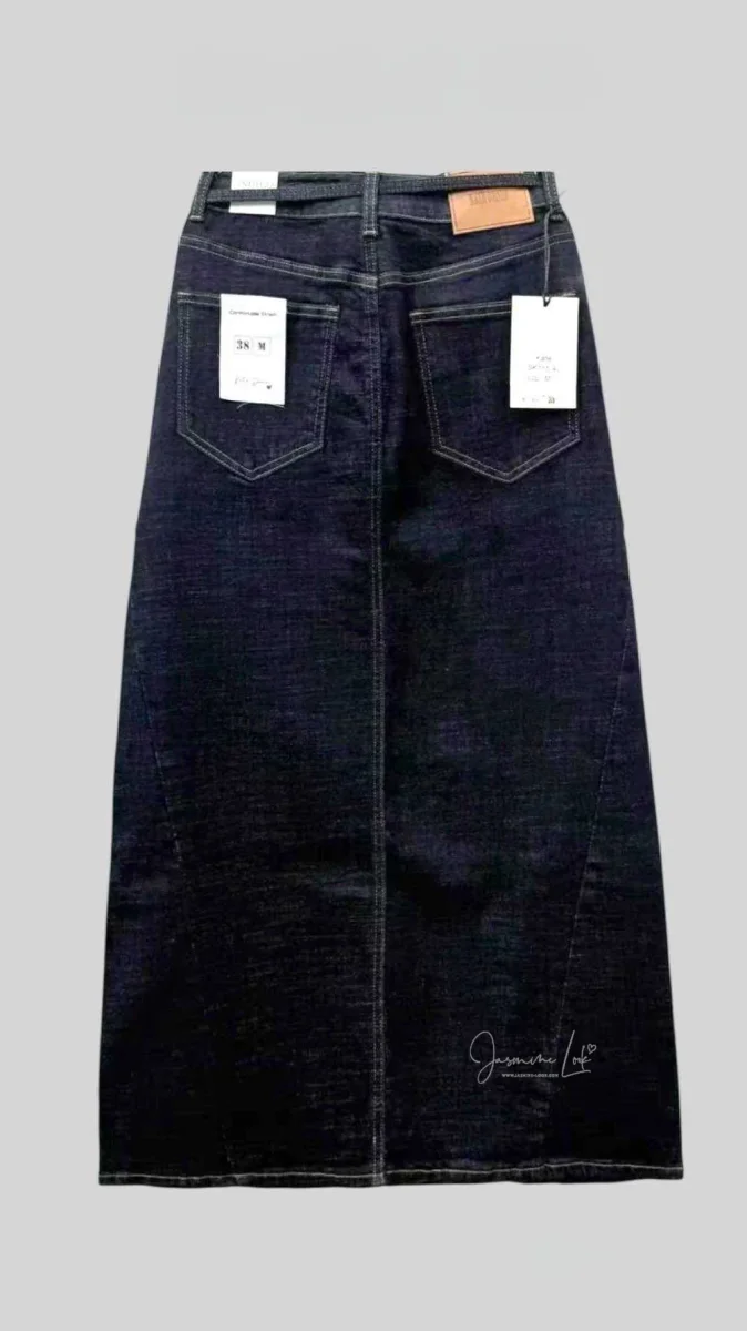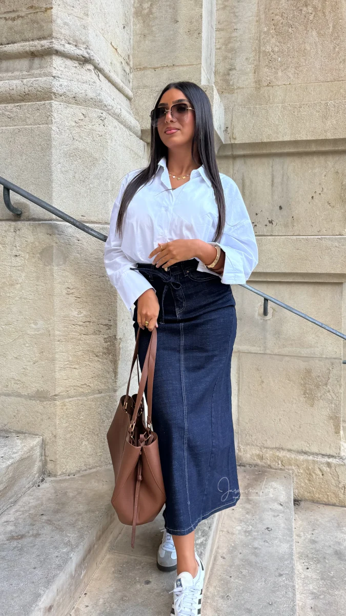 ⚜️Jupe en jean taille haute ceinturée , coupe trapèze