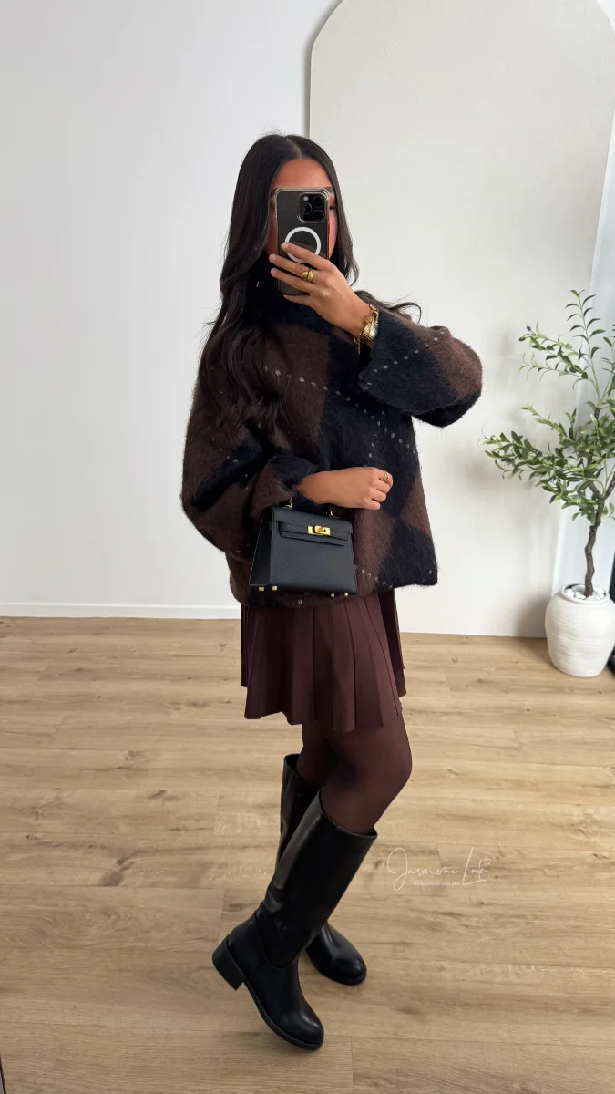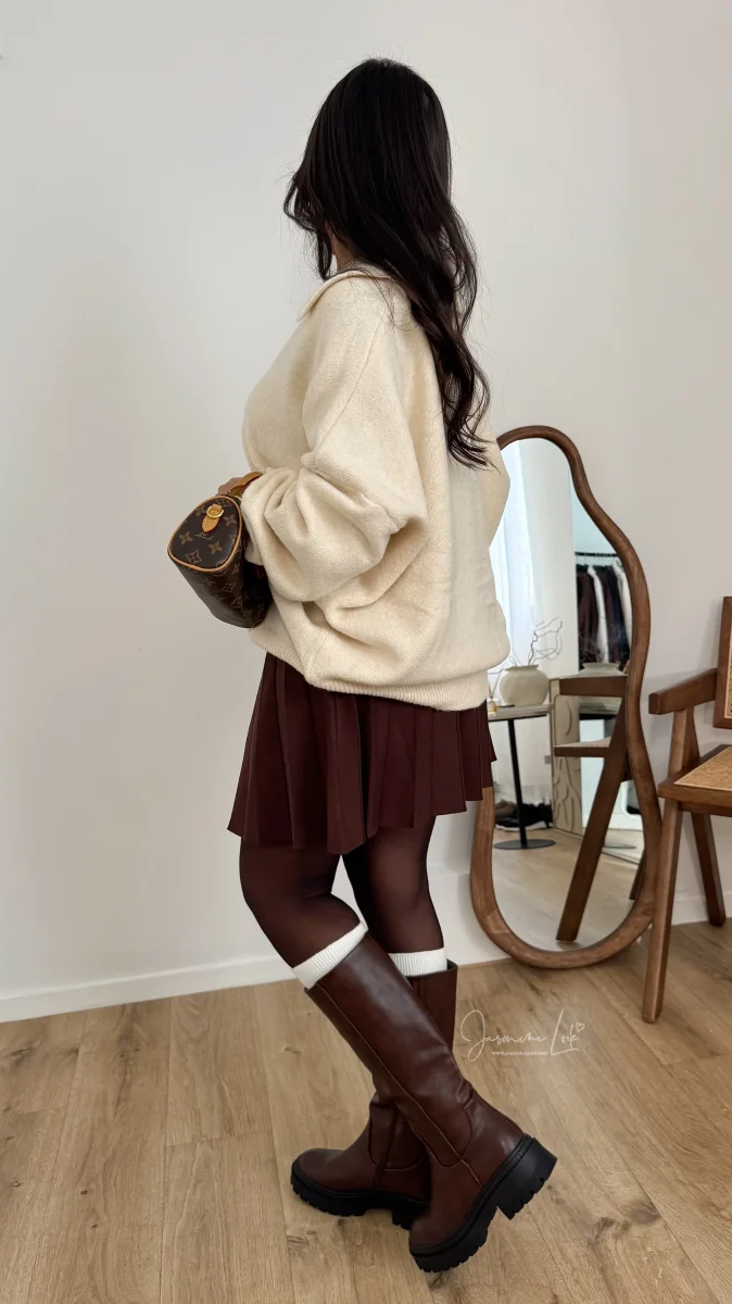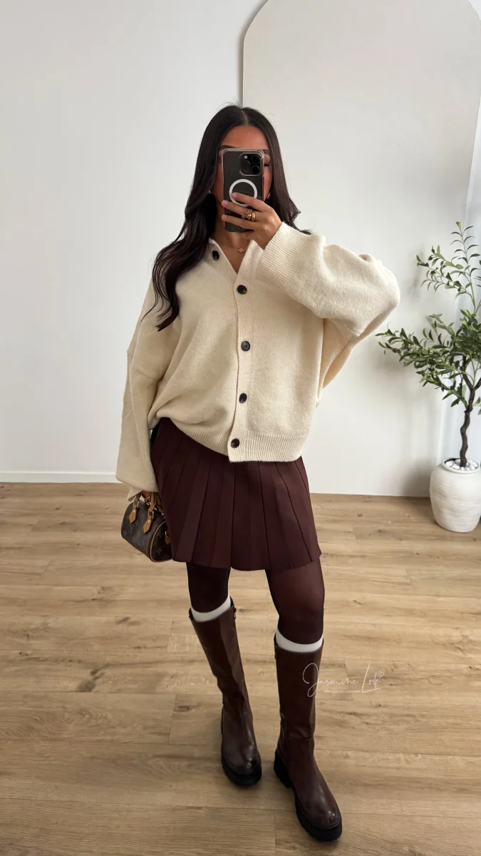 Jupe en maille taille haute détail plissé Taille juste , si entre 2 tailles nous recommandons la plus grande . La modèle mesure 1m63 porte la taille SM