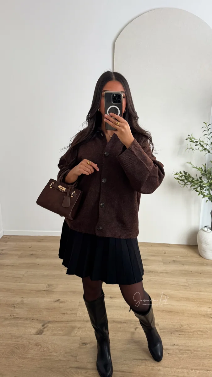 Jupe en maille taille haute détail plissé Taille juste , si entre 2 tailles nous recommandons la plus grande . La modèle mesure 1m63 porte la taille SM