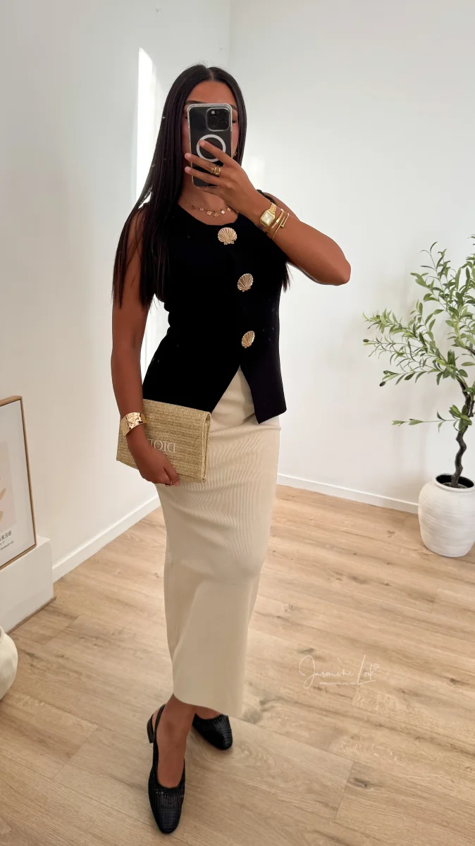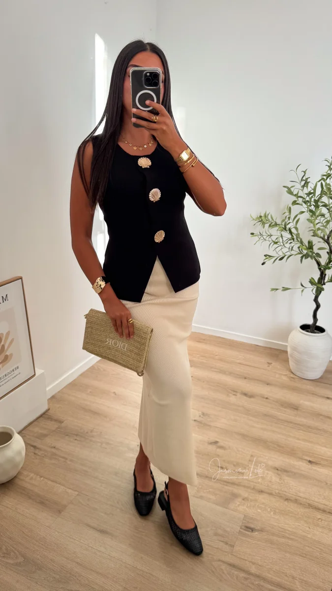⚜️Jupe en maille fine avec taille élastique coupe évasé ⚜️Taille moulante assez juste , entre 2 tailles nous recommandons la plus grande pour plus de confort . La modèle mesure 1m63 et porte la taille SM