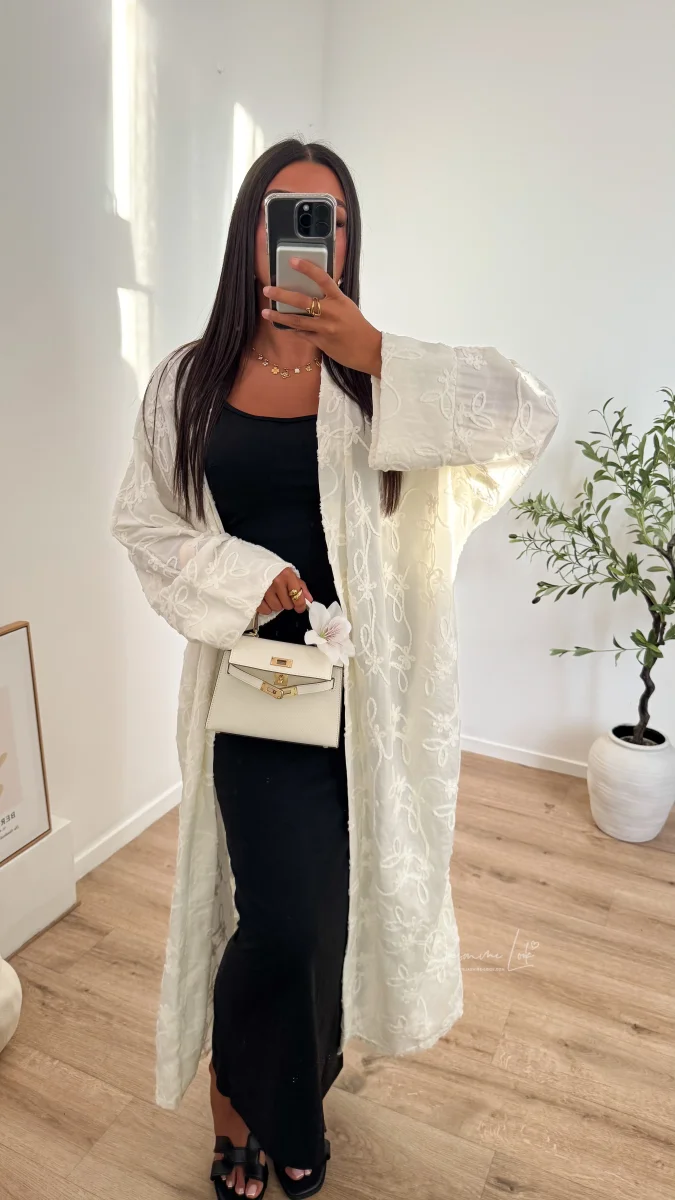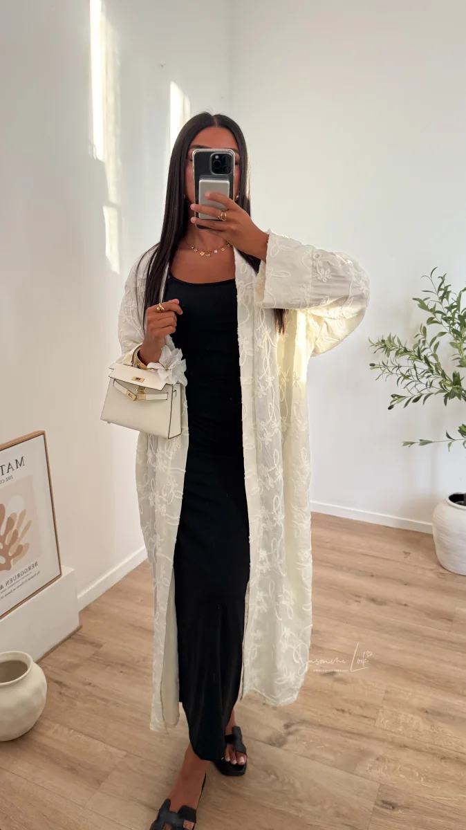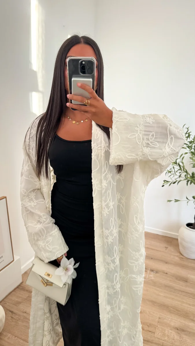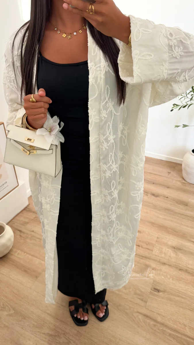 ⚜️Kimono avec broderie en relief coupe ample ⚜️Taille unique convient du Xs au XL . La modèle mesure 1m63