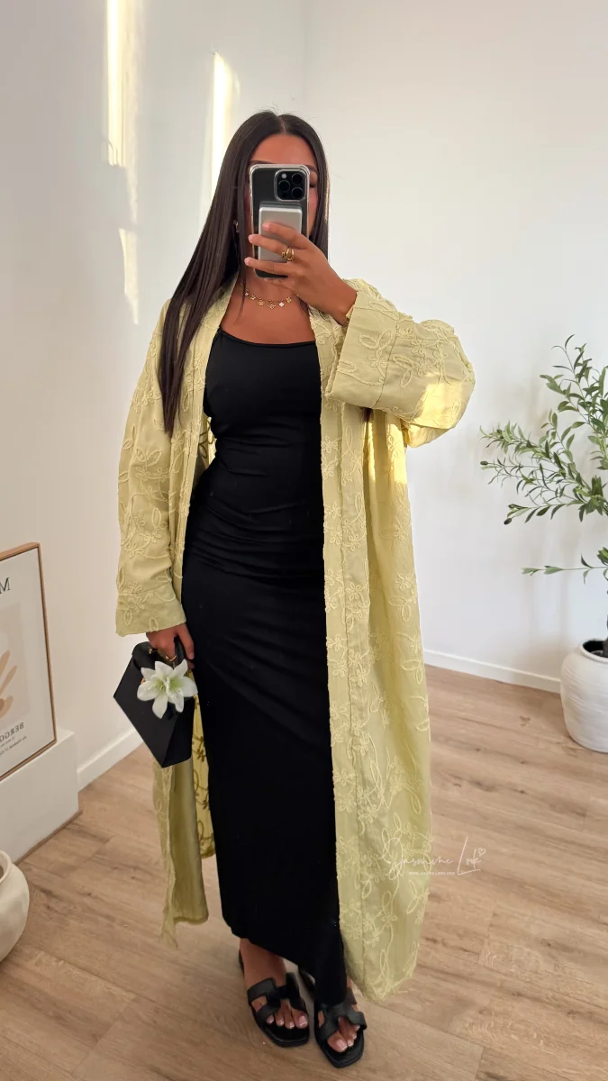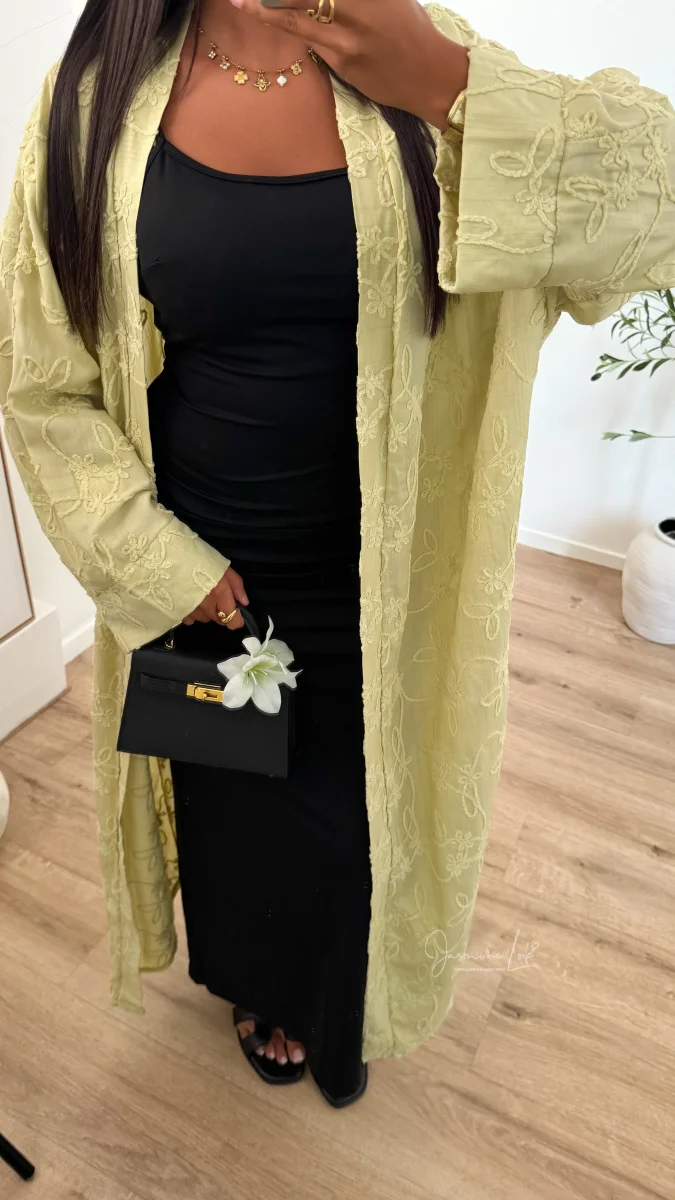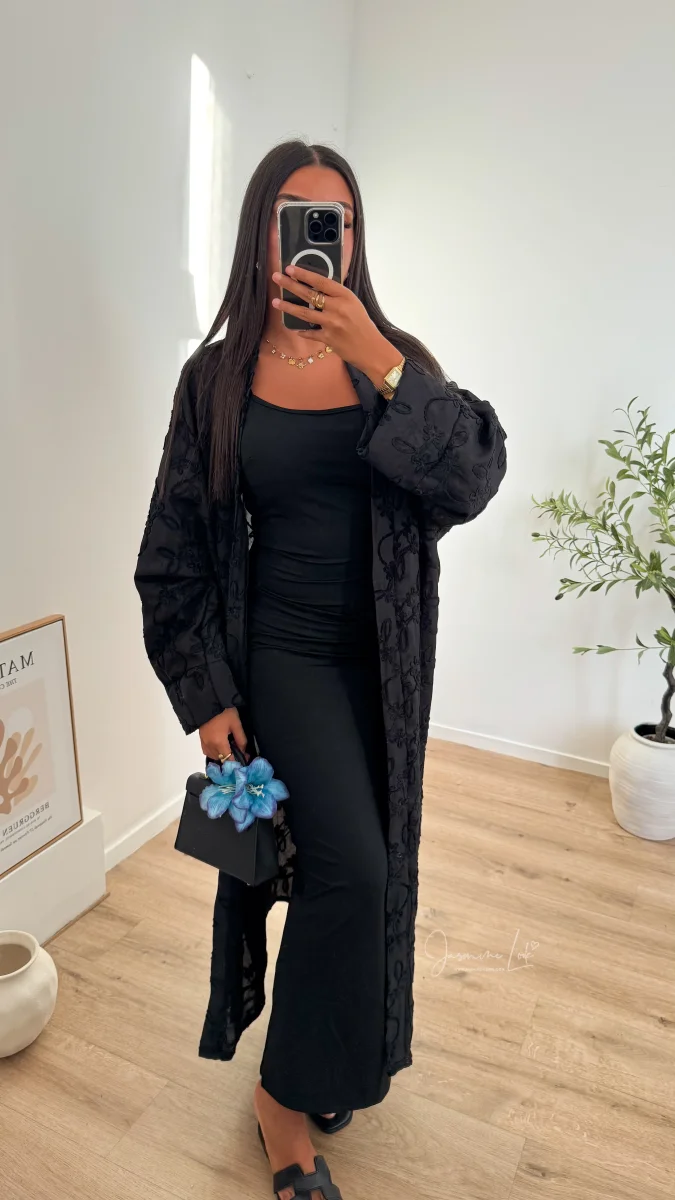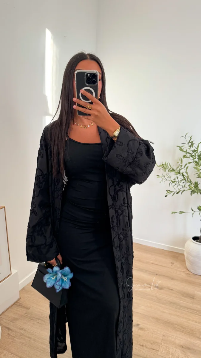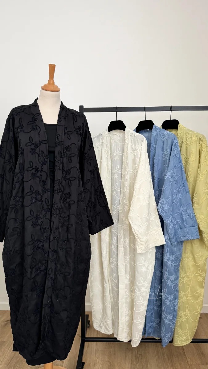⚜️Kimono avec broderie en relief coupe ample ⚜️Taille unique convient du Xs au XL . La modèle mesure 1m63